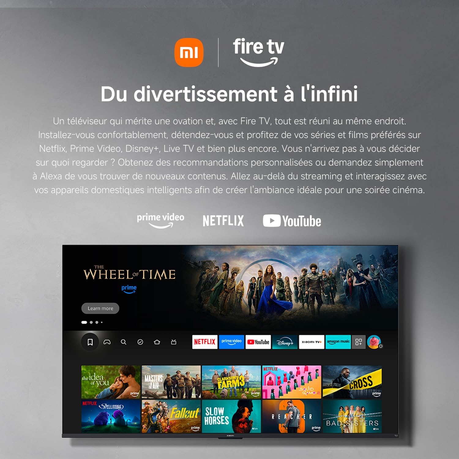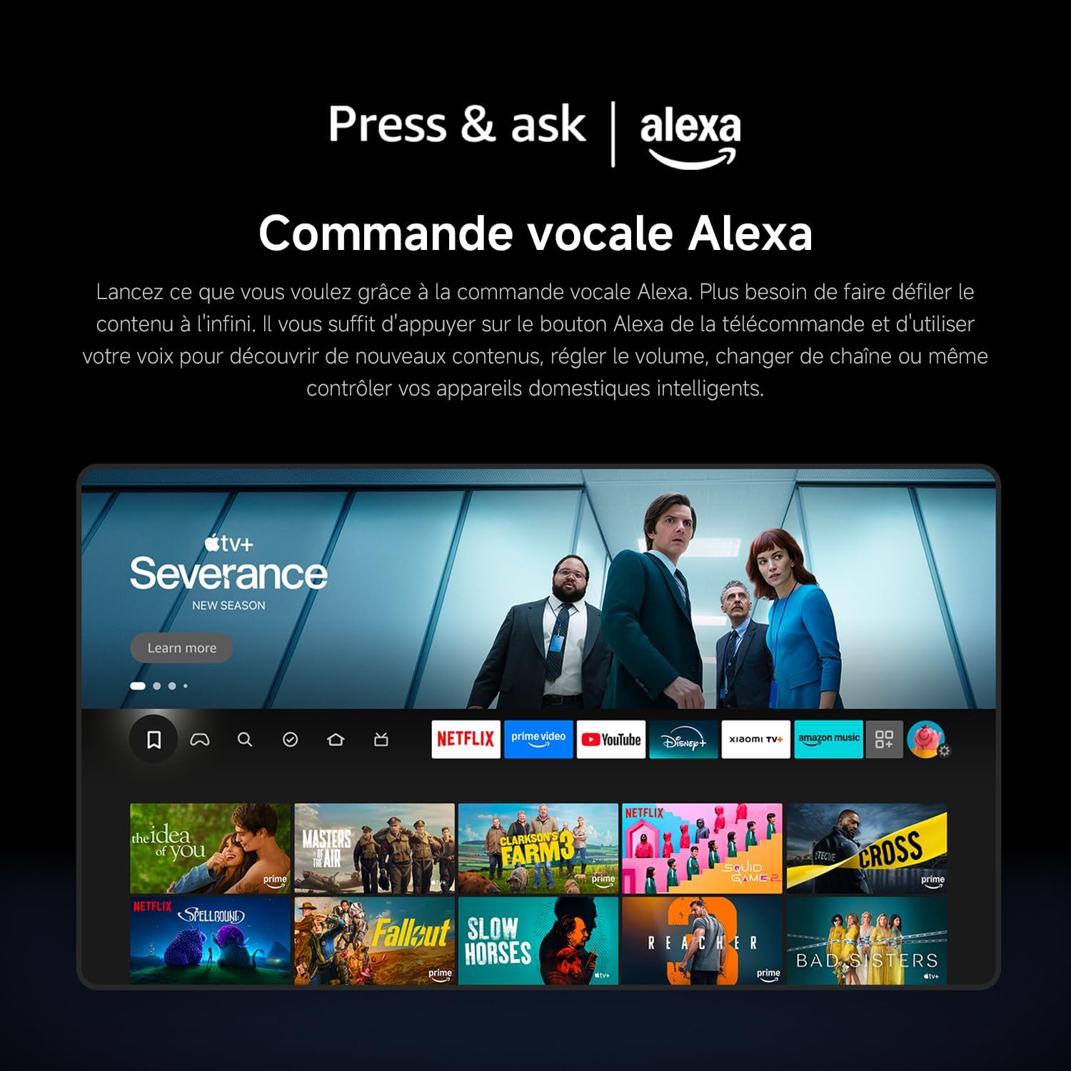 4K HDR10 and Filmmaker Mode: HDR10 delivers exceptional 4K clarity, better contrast, and richer colors. Discover sharper details in both bright and dark scenes. Activate Filmmaker Mode for a cinematic experience that meets Hollywood standards, allowing you to appreciate the director's creative intent. Picture quality far surpasses standard HD. Fire TV provides direct access to thousands of apps, such as Netflix, Prime Video, Disney+, and more, right on your screen. Quickly and easily browse, play, and discover new content. Personalized recommendations help you find your next favorite show quickly and easily. Built-in Alexa: Simply say what you want to hear, and Alexa will play it. Say goodbye to endless scrolling. Simply press the Alexa button on your remote to discover new content, adjust the volume, change channels, and even control smart home devices using your voice. [Apple AirPlay] With Apple AirPlay, easily stream content from your iPhone, iPad, or Mac directly to your TV. Share photos, play videos, or wirelessly mirror your entire screen in seconds. Enjoy your favorite content on a big screen without any other devices. Seamlessly integrates with your Apple ecosystem. Watch exclusive movies, shows, and original content instantly [Netflix and Prime Video]. Enjoy blockbuster movies and award-winning shows anytime, anywhere. Fast access and smooth playback keep your entertainment on standby. Relax and enjoy great shows. Bright 4K screen with Dynamic Smoothing technology. 120Hz refresh rate via HDMI connection in Game Boost mode. Stylish metal design with ultra-narrow bezels.