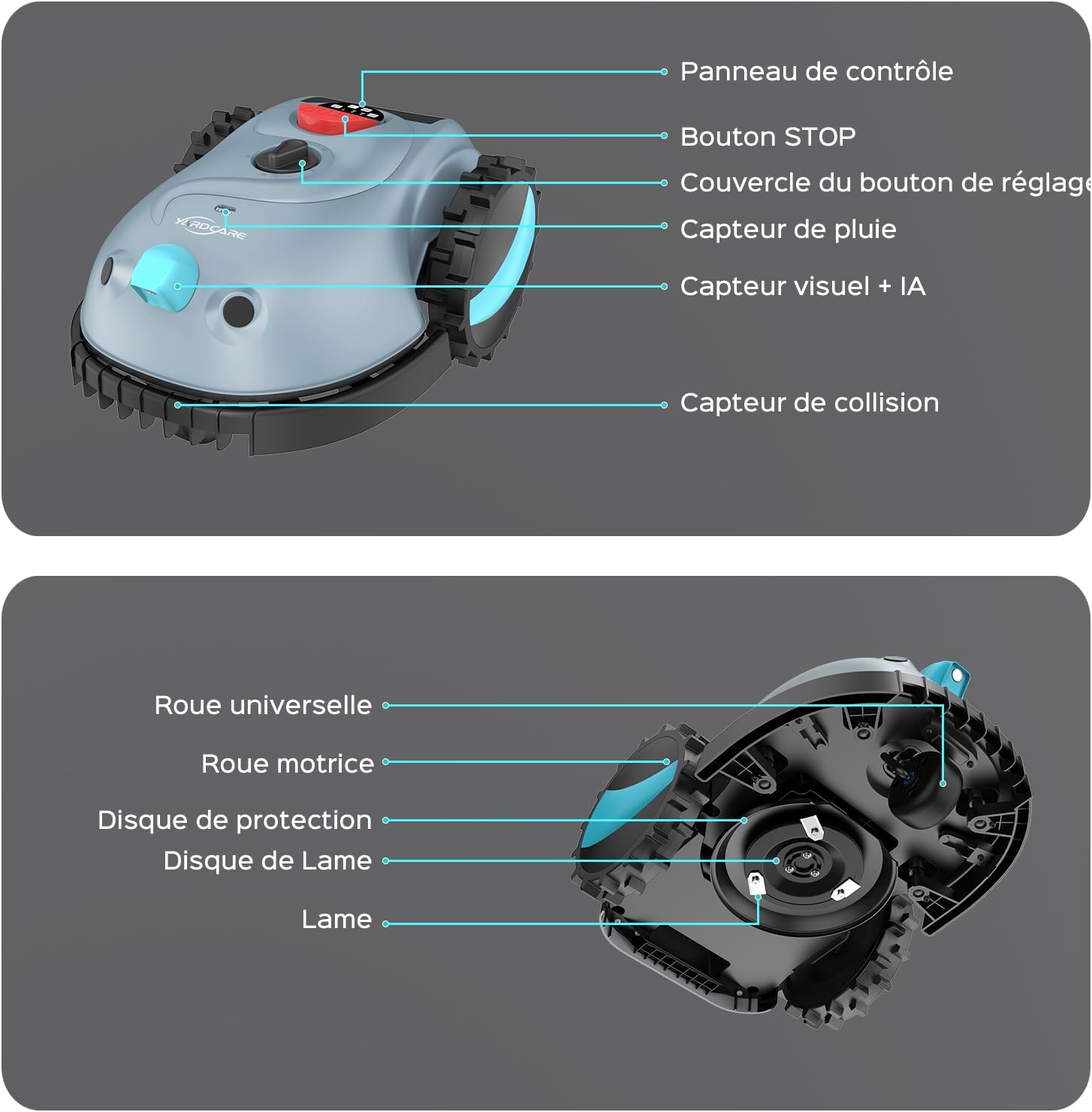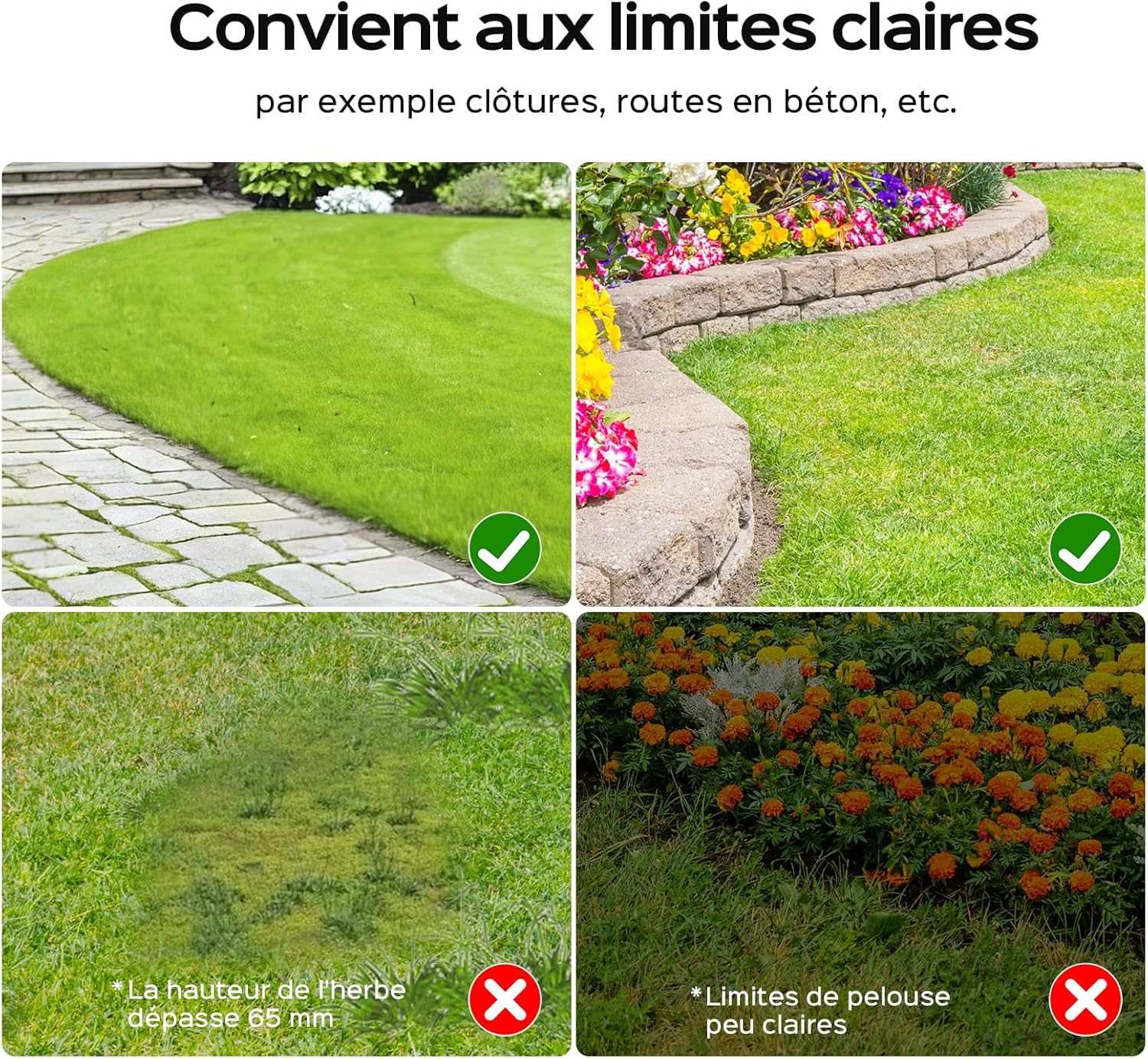 Intelligent Vision NavigationOur robotic lawnmower is equipped with collision sensors, vision sensors, and advanced AI technology, utilizing cameras for navigation. It can accurately distinguish between lawn and non-lawn areas and identify 150 types of obstacles. If there is an obstacle in the robotic lawnmower's blind spot, it will automatically adjust its path after a collision, ensuring safe and efficient operation. Time-Saving DesignSay goodbye to tedious and time-consuming perimeter line installation, and no outdoor power outlet is needed. Our cordless robotic lawnmower is extremely easy to use; simply replace the battery in time (standard 4Ah battery) to save you valuable time and simplify lawn maintenance. Floating BladeThe YARDCARE cordless robotic lawnmower comes with 3 durable blades (3 spare blades are included). The cutting width is 16 cm, and the blade height is adjustable between 20 mm and 60 mm. This battery-powered robotic lawnmower can handle slopes up to 20 degrees and flexibly adapt to different lawn conditions. Multiple Safety FeaturesOnce the robotic lawnmower is lifted, the tilt sensor immediately stops the blades. An emergency stop switch allows you to quickly stop the robotic lawnmower in an emergency. In addition, a rain sensor will automatically stop the robotic lawnmower when it rains, ensuring the safety of you and your family. [High-Performance Brushless Motor] Compared to brushed motors, our peripheral robotic lawnmower equipped with a brushless motor is more powerful, has a longer lifespan, and runs longer. It provides reliable and durable performance for your mowing needs. 1. Low noise 2. Easy to store 3. Climbable Can the robotic lawnmower be used at night/in the rain? The robotic lawnmower camera requires good lighting to work effectively. For safety reasons, it is equipped with a rain sensor. Therefore, it can only be used during the day when it is not raining. What type of lawn is this robotic lawnmower suitable for? Can it trim to the edges? This robotic lawnmower is suitable for small lawns with well-defined boundaries, approximately 100 square meters in area. This robotic lawnmower is for routine lawn maintenance and is not suitable for grass taller than 65 mm. For lawns taller than 65 mm, manual trimming beforehand is recommended.