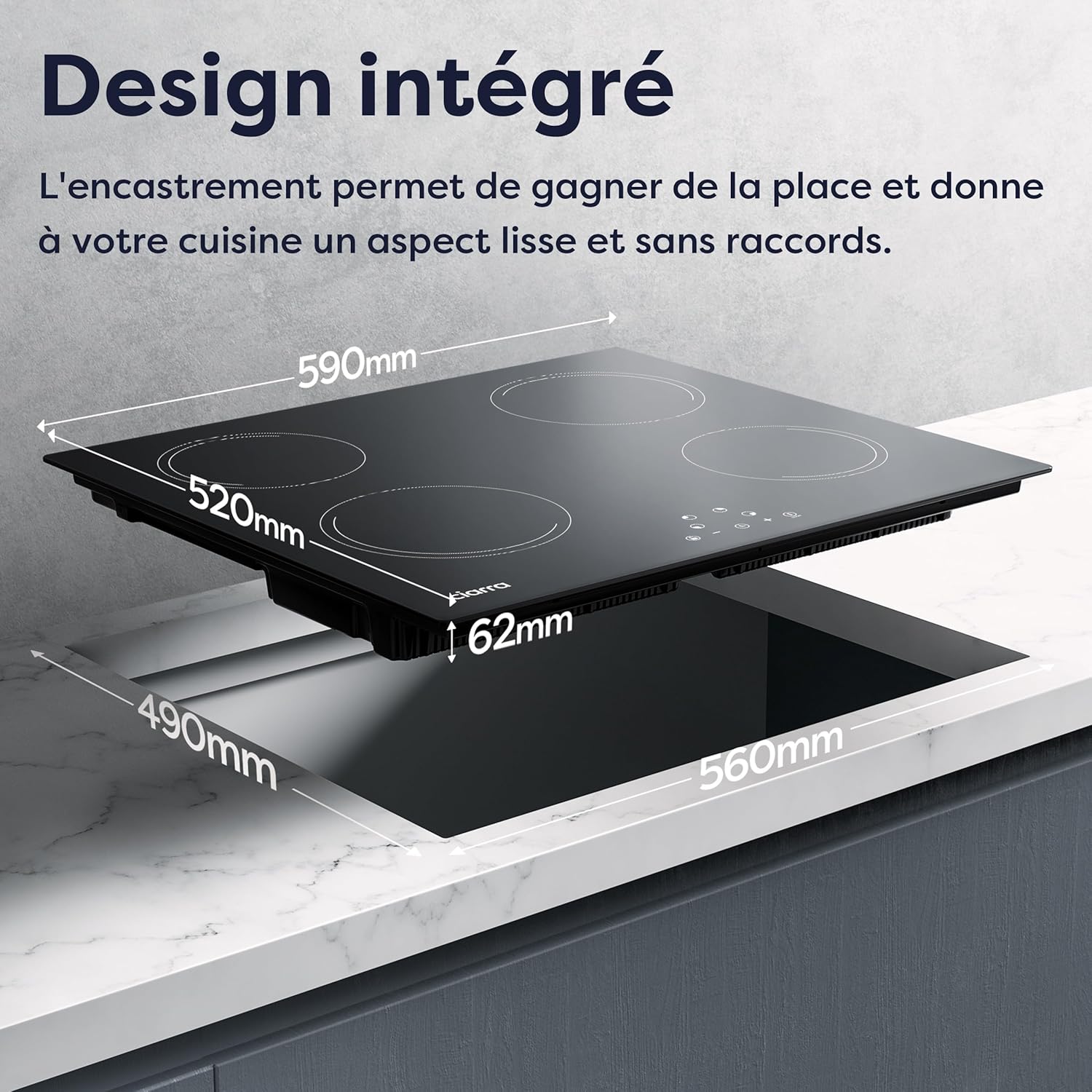 Ciarra Induction Hob - 4 Zones - 6000W - Built-in Hob - Touch Controls - 9 Power Levels - CABBIH4-E