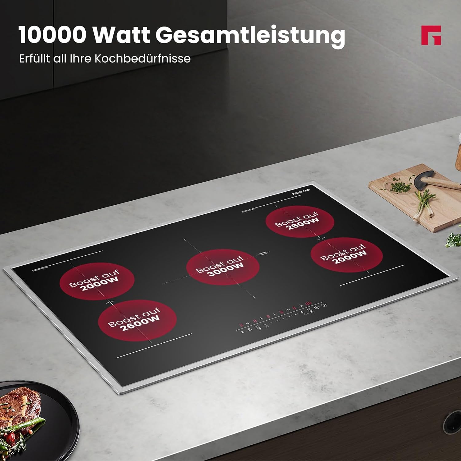 GASLAND IH905BFB 90cm Built-in Induction Hob, 5 Burners with Stainless Steel Frame, Special BBQ Zone, PowerBoost, 10000W (Frying Pan Not Included)