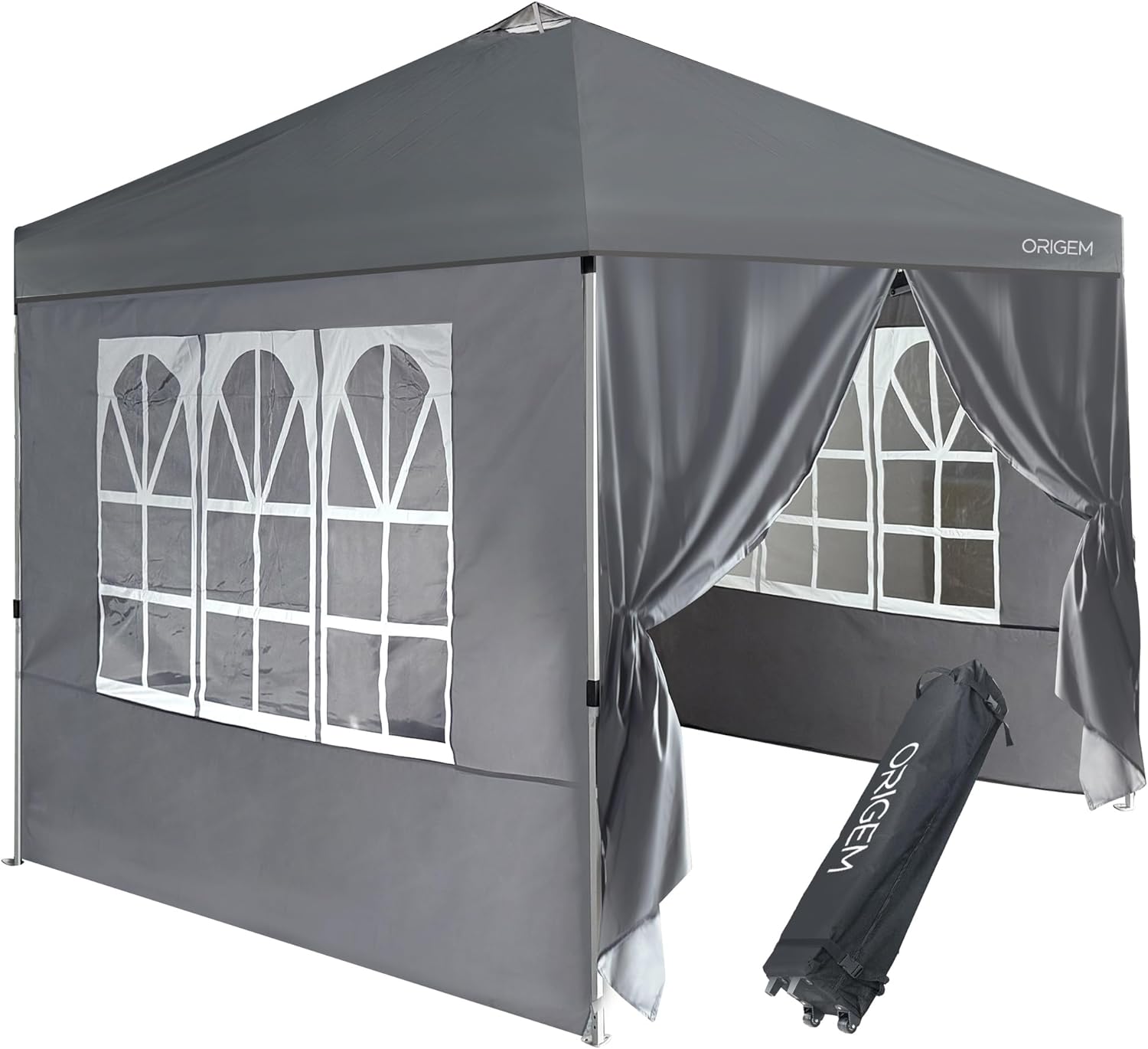 Origem 3x3m Waterproof Folding Gazebo & 2.5 x 2.5m & 3x6m with Side Panels, One-Step Assembly & Wheeled Storage Bag, Outdoor Garden Gazebo, Ideal for Camping