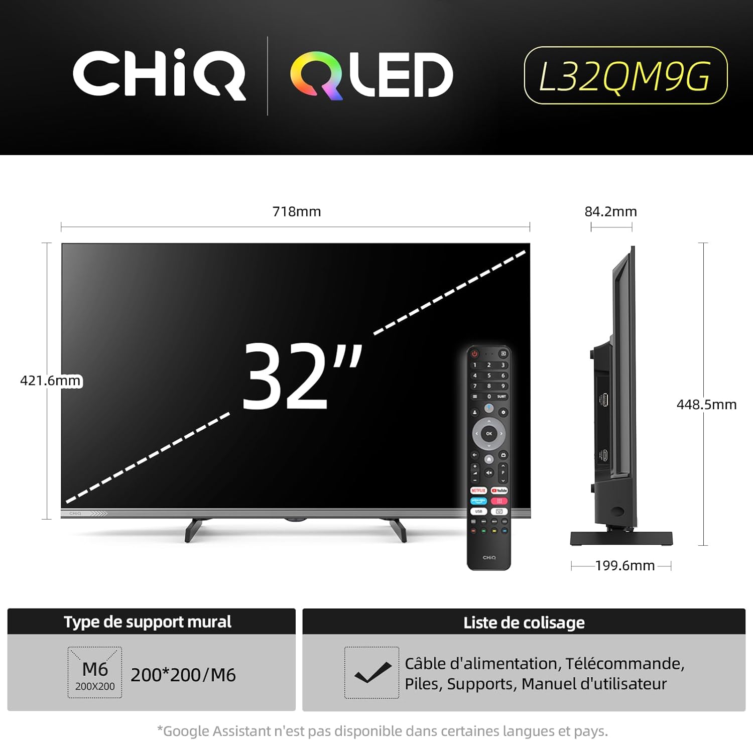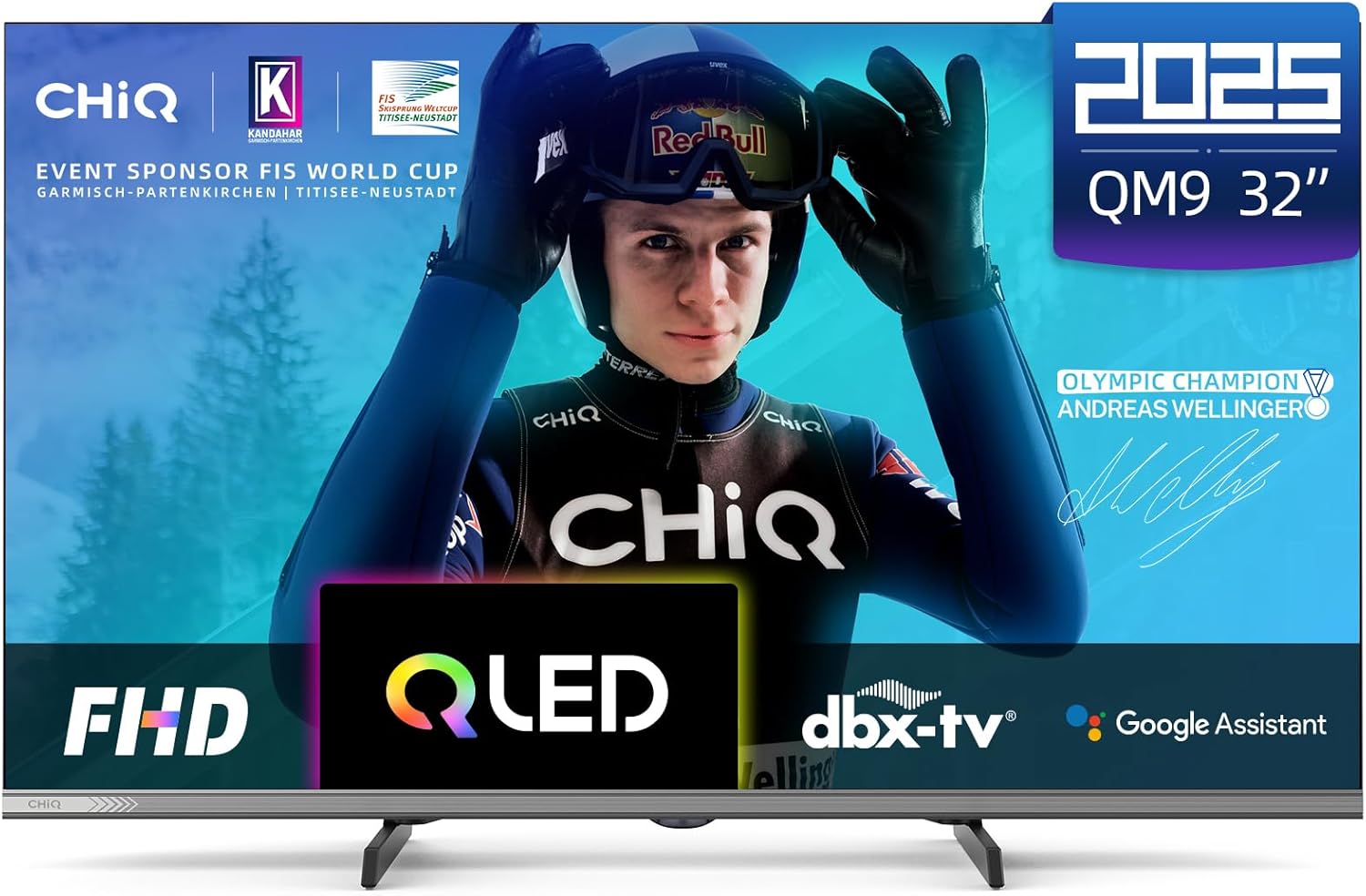 CHIQ L32QM9G 32-inch (80 cm) FHD Smart TV QLED HDR10 Google TV Google Assistant Triple Tuner Dolby Audio DBX-TV Built-in Chromecast HDMI USB Frameless Metal Black