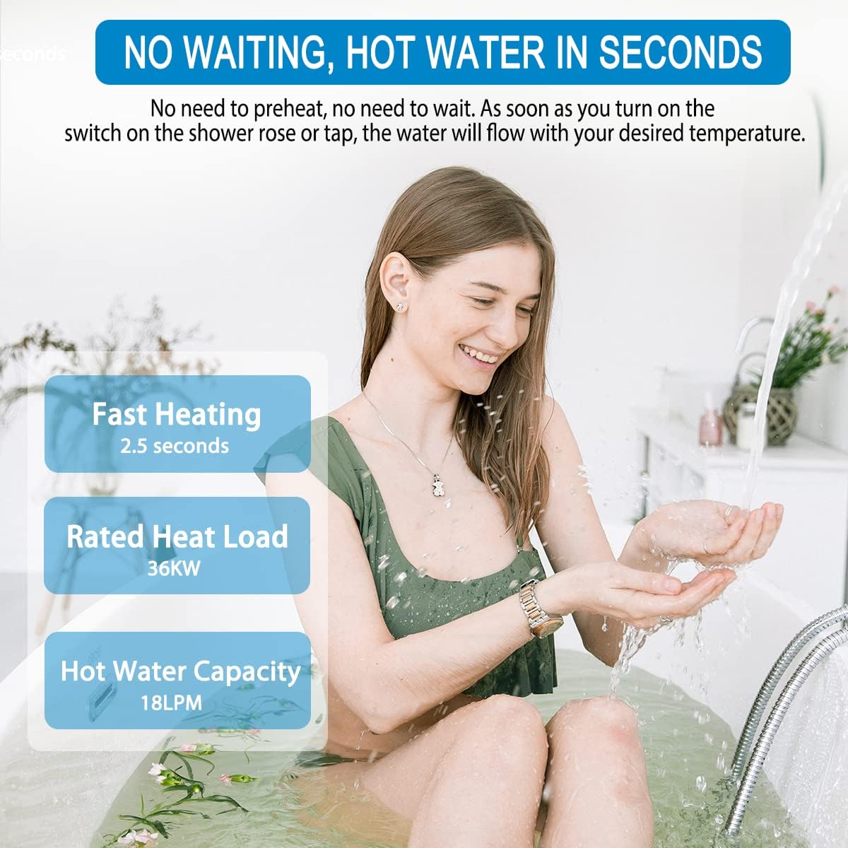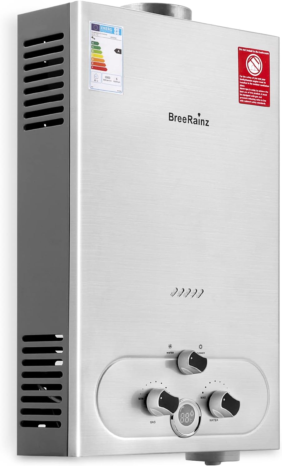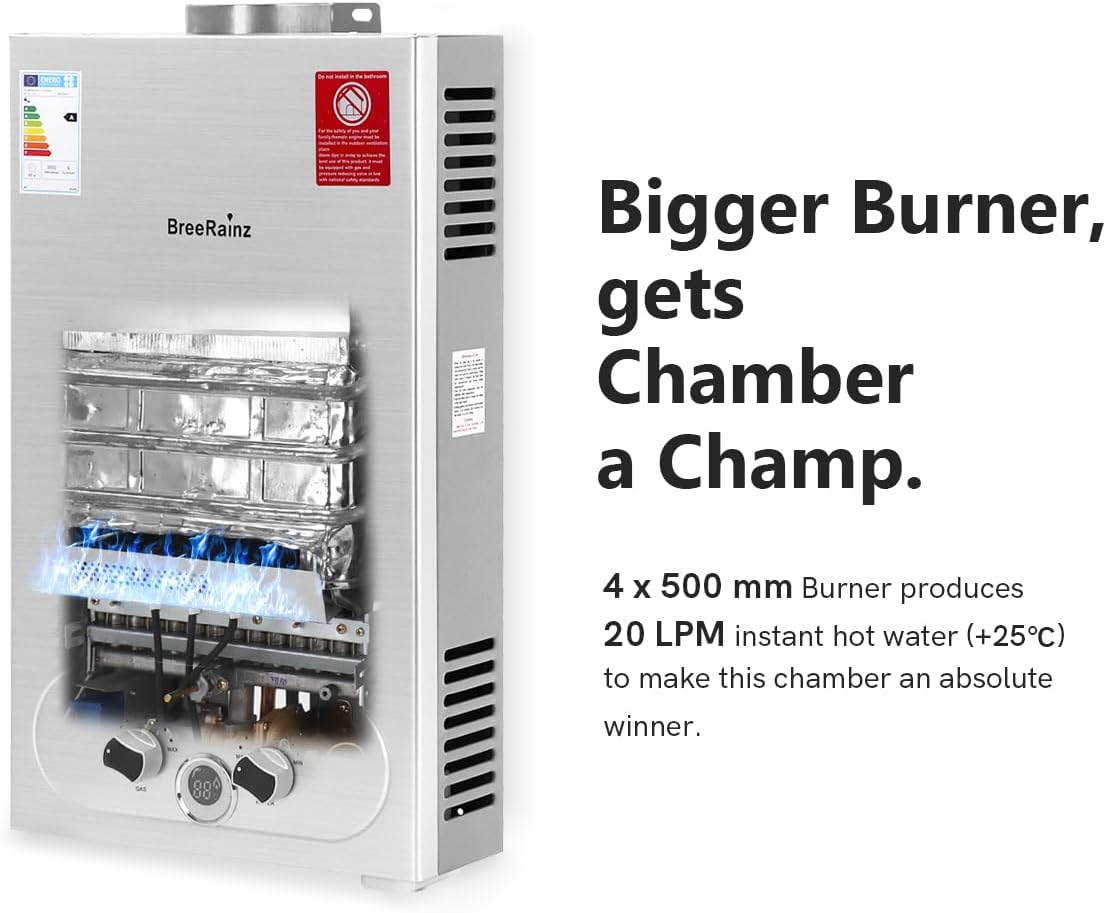 BreeRainz 18LPM Gas Water Heater, 36KW Instantaneous Propane/Butane Gas Water Heater, Super Low Starting Water Pressure, for Home, Camper Van