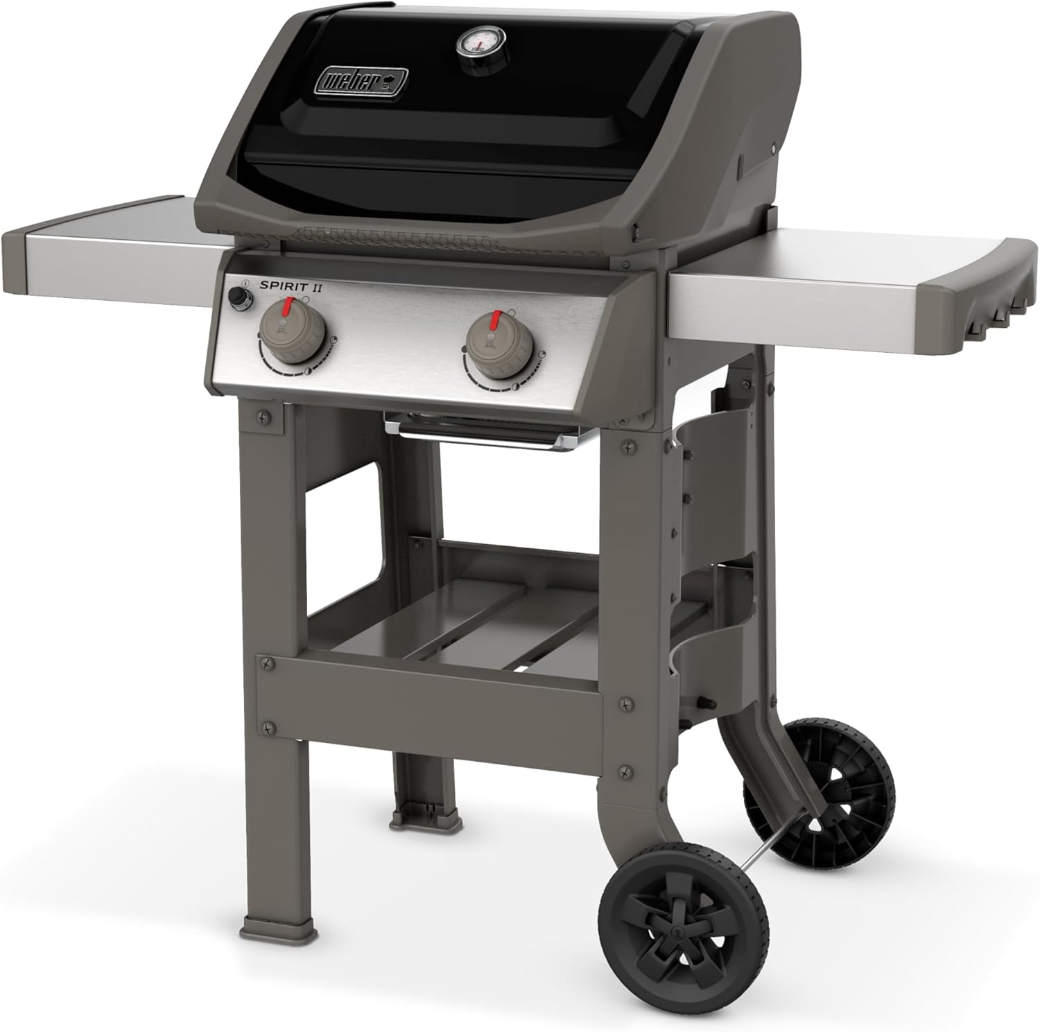 Spirit II E-210 GBS Gas Barbecue, 2 Burners, Cooking Surface 51 x 46 cm, Lid Thermometer, Folding Side Table (Left), 4 Wheels - Black and Silver (44010153)