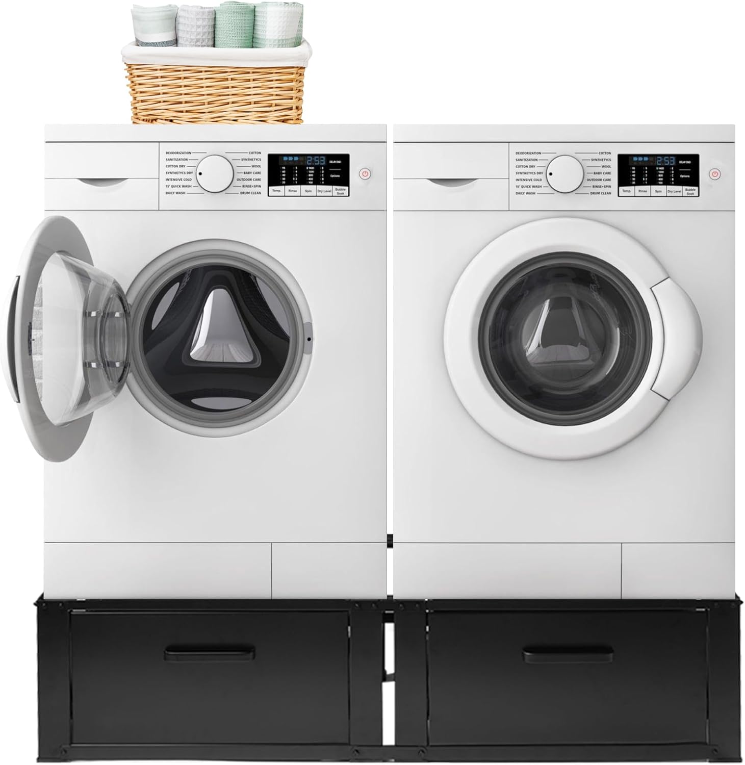 Vonia Double Riser for Washing Machine and Dryer With Drawer Sturdy Washing Machine Support Black