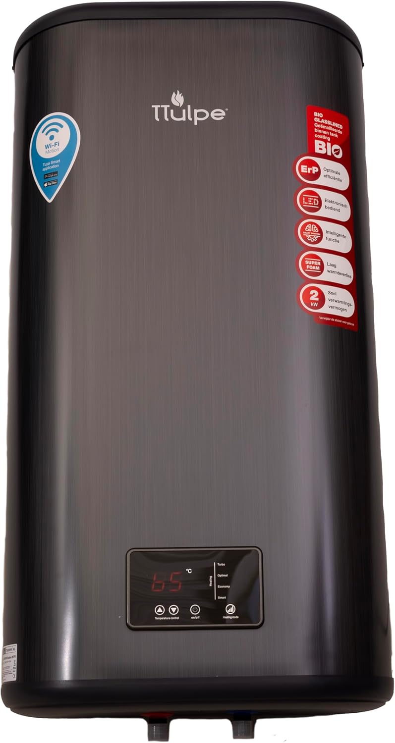 TTulpe Shadow 50-V 50 litre flat vertical water heater with wifi