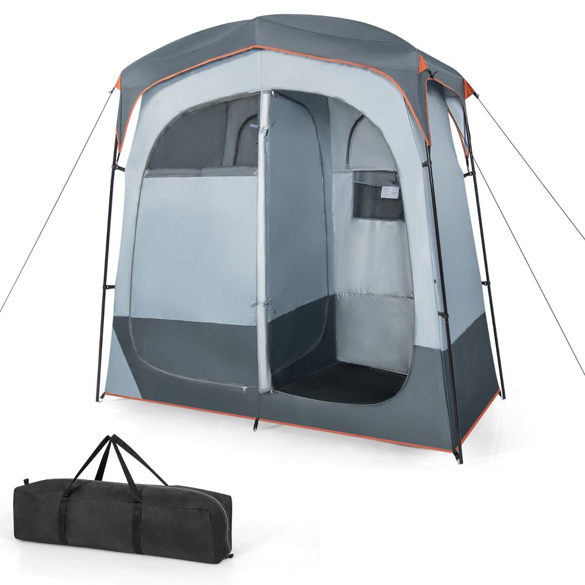 Portable 2-Person Shower Tent in 2 Parts with Removable Rain Cover, Clothesline, and Hook, 210x107x210 cm, Grey -