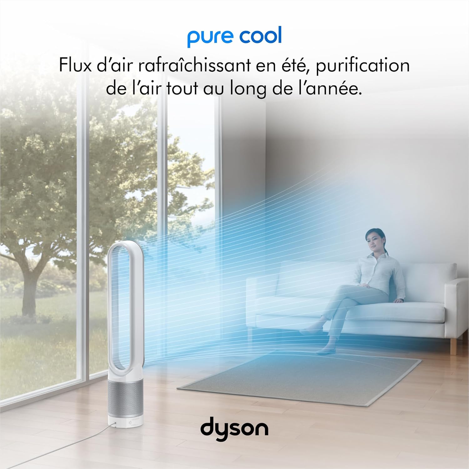 Dyson Pure Cool TP00 Bladeless Tower Fan Purifier, 10 Speeds, 434L/s, 360Spend HEPA Filter, Captures 99.95% of Particles, White/Silver