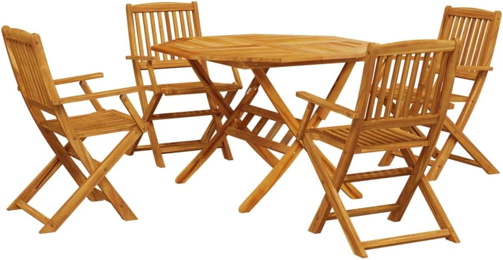 vidaXL 5-Piece Folding Garden Dining Set, Solid Acacia Wood, Outdoor Dining Set, Garden Dining Room Furniture, Garden Table and Chairs