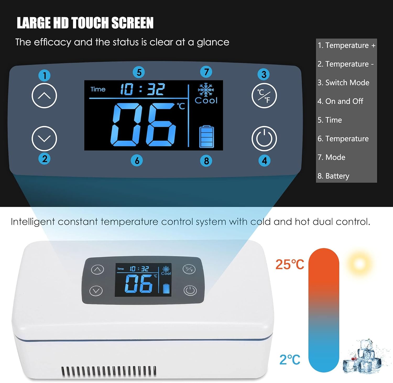 CGOLDENWALL Portable Insulin Refrigerator Cooler 2~8 Drug Reefer Mini Refrigerated Medicine Travel Box with Large Cold Space 175 * 60 * 26 mm - 12-hour battery life