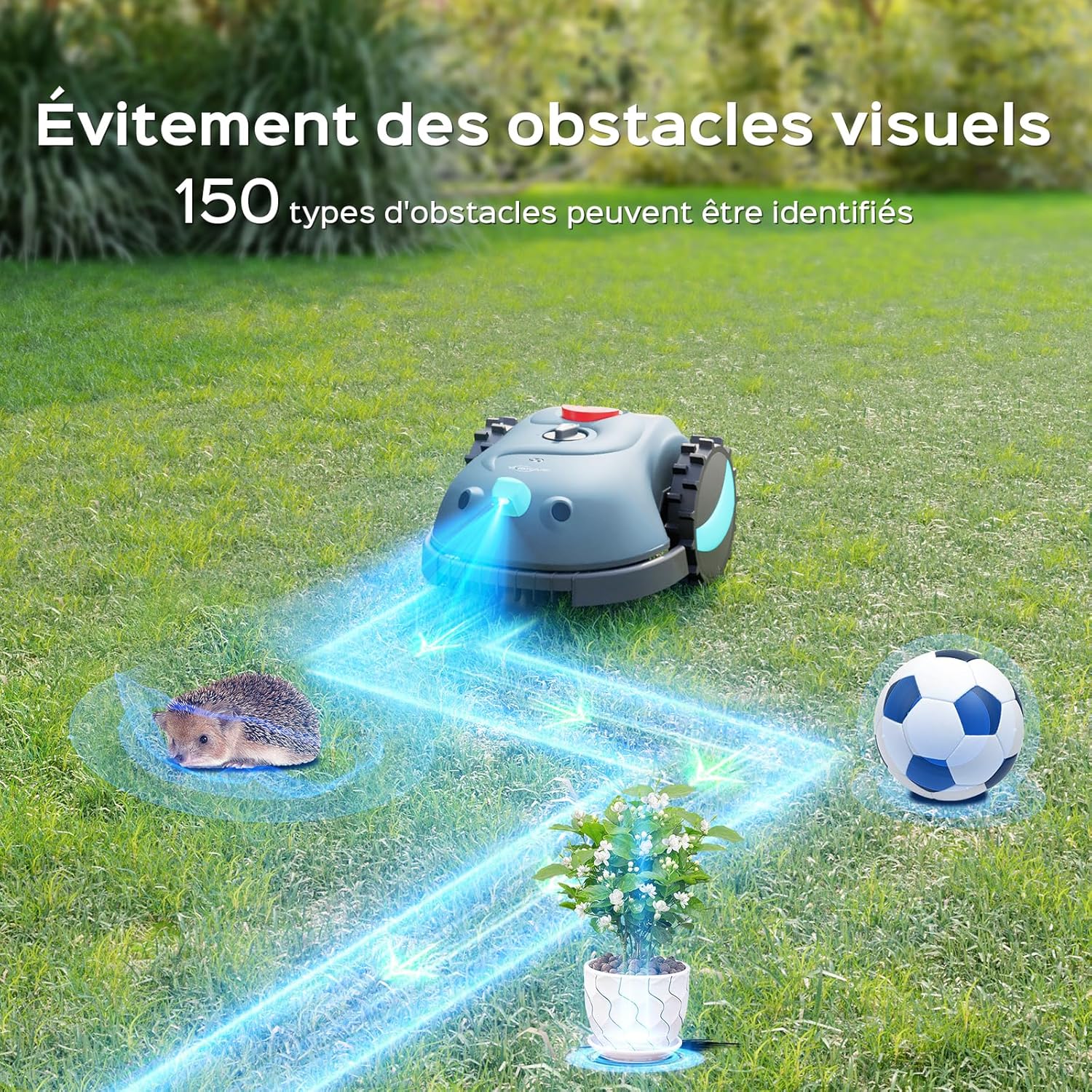 YARDCARE V100 Cordless Robotic Lawnmower with Peripheral, Vision Navigation, Obstacle Avoidance (150 Types), Robotic Lawnmower with 4 Ah Battery, Spare Blade