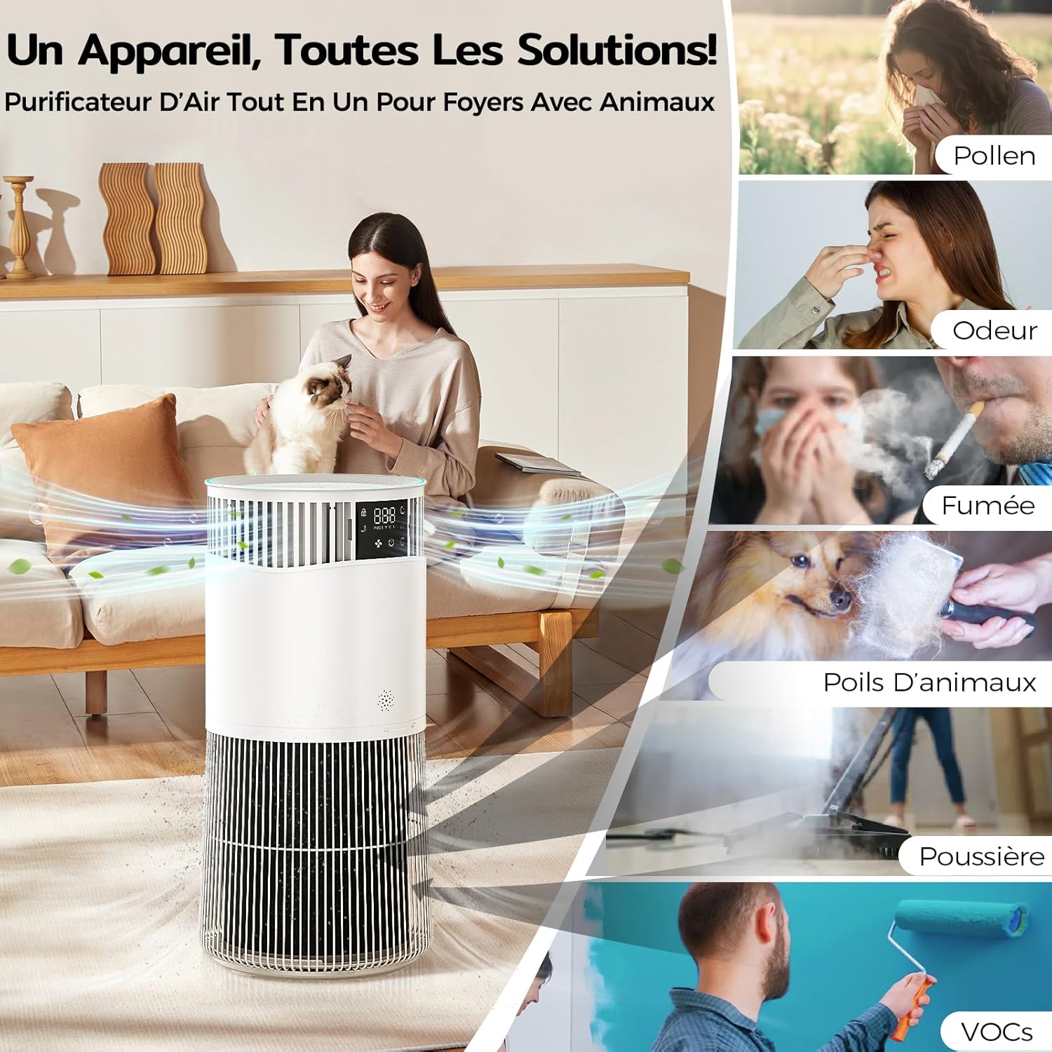 Amicura P2 HEPA Air Purifier for Pets and Allergy Sufferers, 843 m3/h CADR, Effective Against Pet Hair, Hospital-Grade H13 HEPA Filter, 450 m3/h Particle Removal, App Control