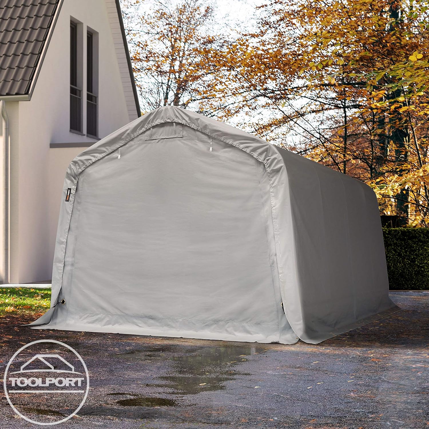 TOOLPORT Tent-Garage Carport 3.3 x 4.8 m Livestock Shelter Agricultural Storage Tent PVC Tarpaulin 800 N Sturdy Frame Grey
