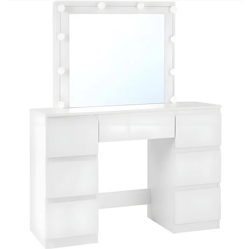 White Dressing Table with LED Mirror - 7 Drawers -