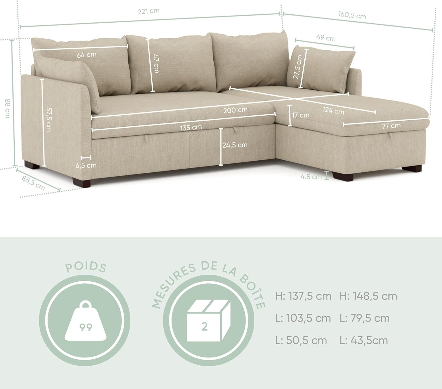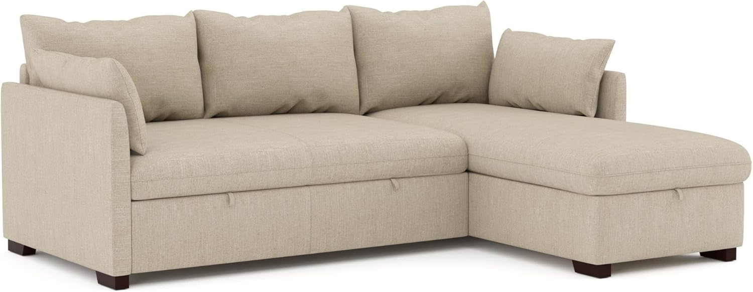 BUDWING Orlando Corner Sofa Bed Chaise Longue with Storage, Reversible Right and Left Facing, Beige