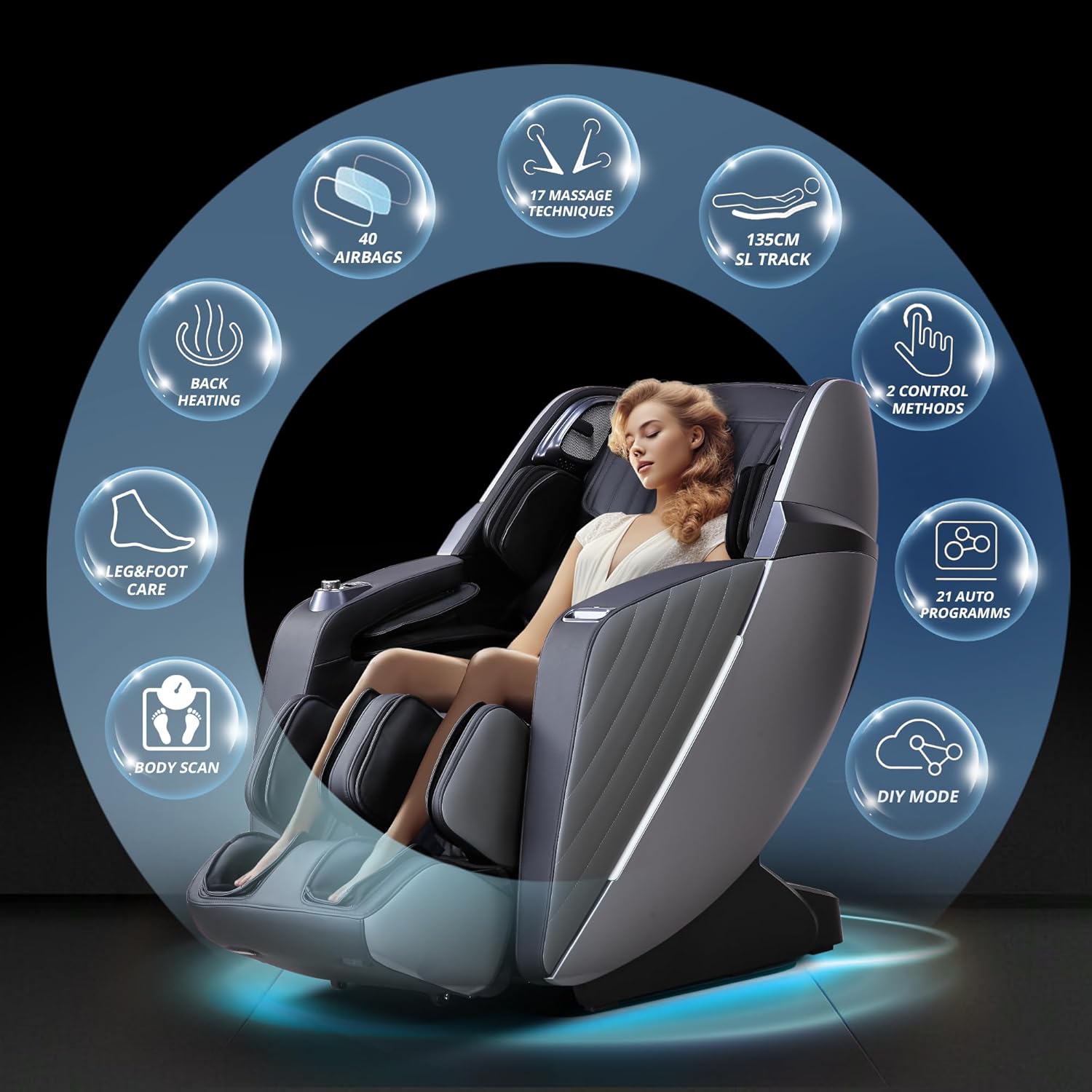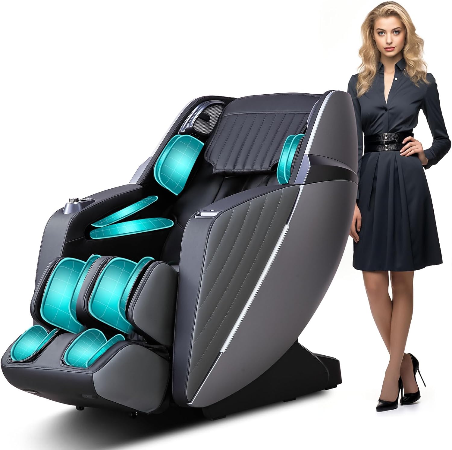 HealthRelife Business Class Massage Chair with Full Body Massage, Body Scan, Shiatsu Massage, Automatic Extension of Calf Support and Calf Massage, Black-Grey