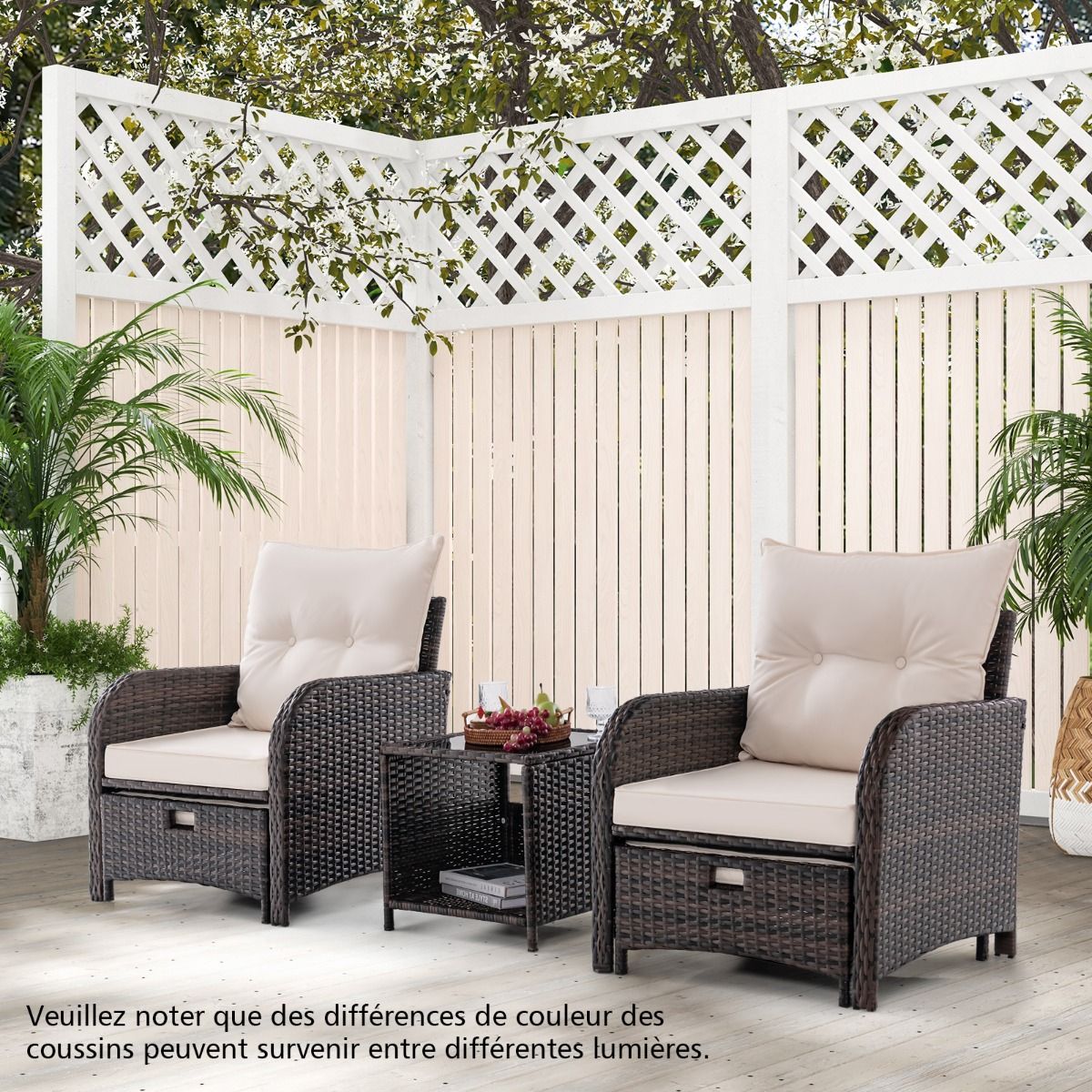 Garden Set with 2 Rocking Chairs and 1 Tempered Glass Coffee Table, All Cushions Included in PE Rattan -
