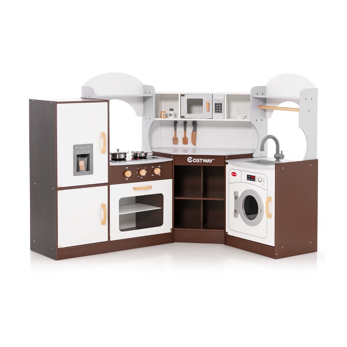 Corner Kitchen Play Set for Children Ages 3 and Up, Wooden Ice Maker, Towel Rack, Accessories, Sound and Light Effects -