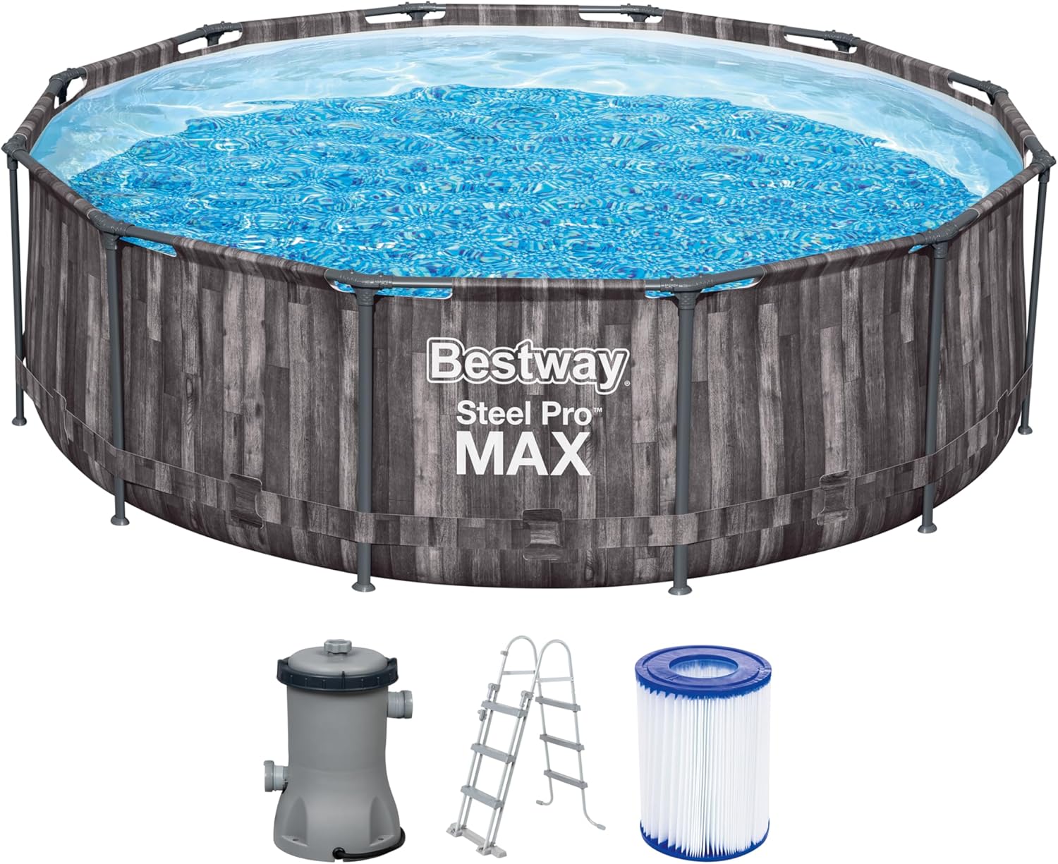 FORNOR 56141 Swimming Pool + Filter Pump 366 x H 100 cm, Wood Effect
