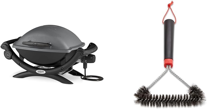 Q1400 Electric Barbecue, 43 x 32 cm cooking surface, portable, enamelled cast iron grill divided into 2 parts, cast aluminum lid and bowl - Dark Grey (52020053)
