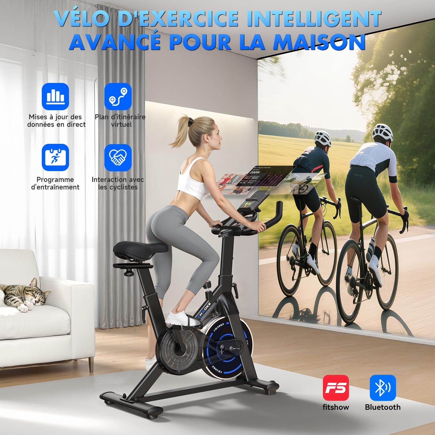 CHAOKE Exercise Bike, Silent Exercise Bike with Adjustable Magnetic Resistance, Indoor Exercise Bike with App and LCD Screen, for Cardio Training, 150KG Capacity