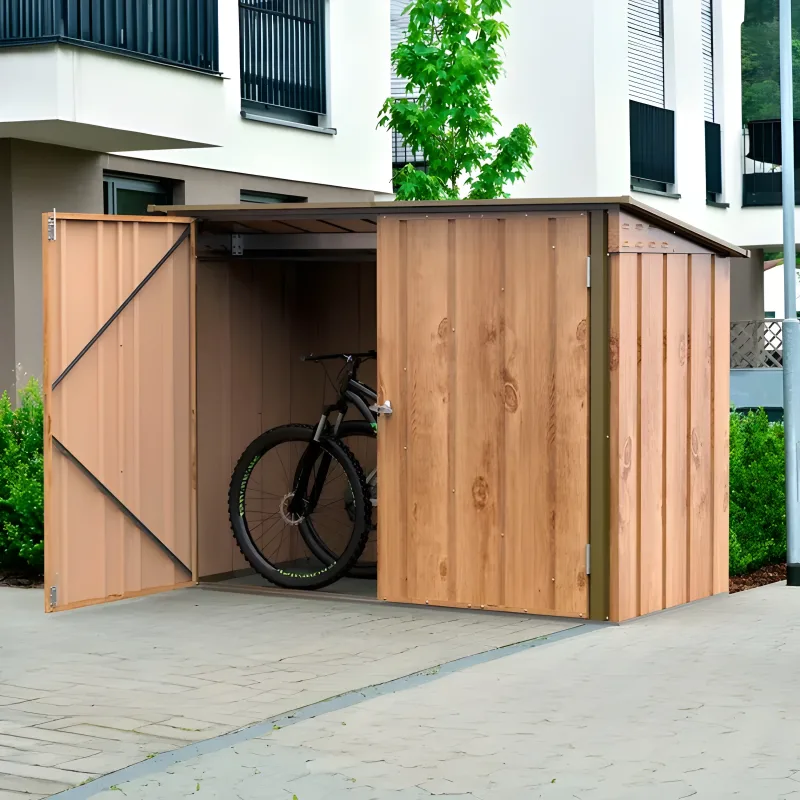 Metal bicycle shelter, 1.74m, wood-effect finish, with anchoring kit -