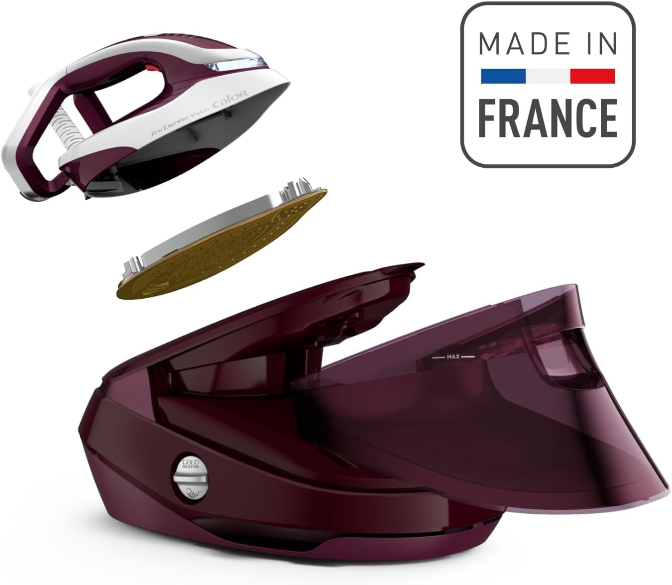 Calor Pro Express Vision Steam Generator Iron, Smart LED Light on the Iron, 8.3 Bar Pressure, Ultra-Powerful, 180 g/min Steam Output, 680 g/min Steam Boost, Anti-scale, Made in France GV9810C0