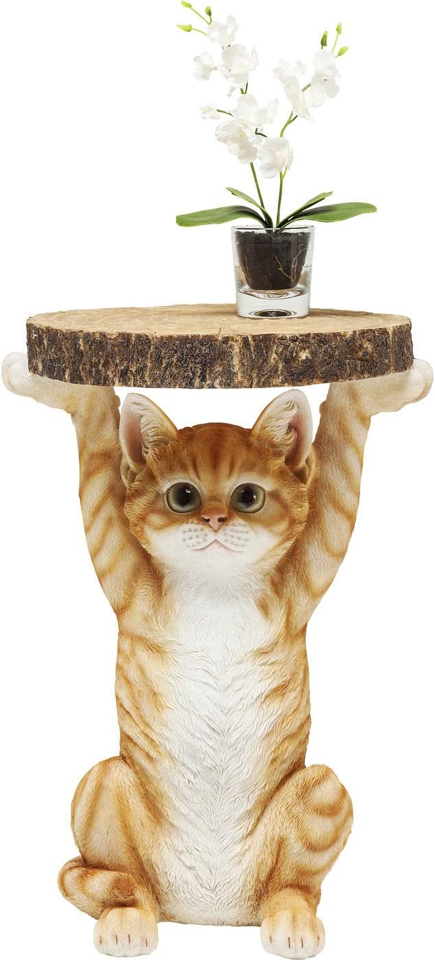 Kare Design Animal Side Table Ms. Cat, Cat, Brown/Orange, Round, Diameter 33 cm, Living Room Table, Furniture, Gift, Home Decor, Bedroom Decoration, Home