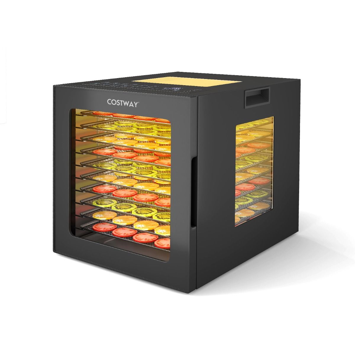 Food Dehydrator with 10 Stainless Steel Trays, 10 Preset Programs, 48H Timer & 30-75 Temperature Range, Black -