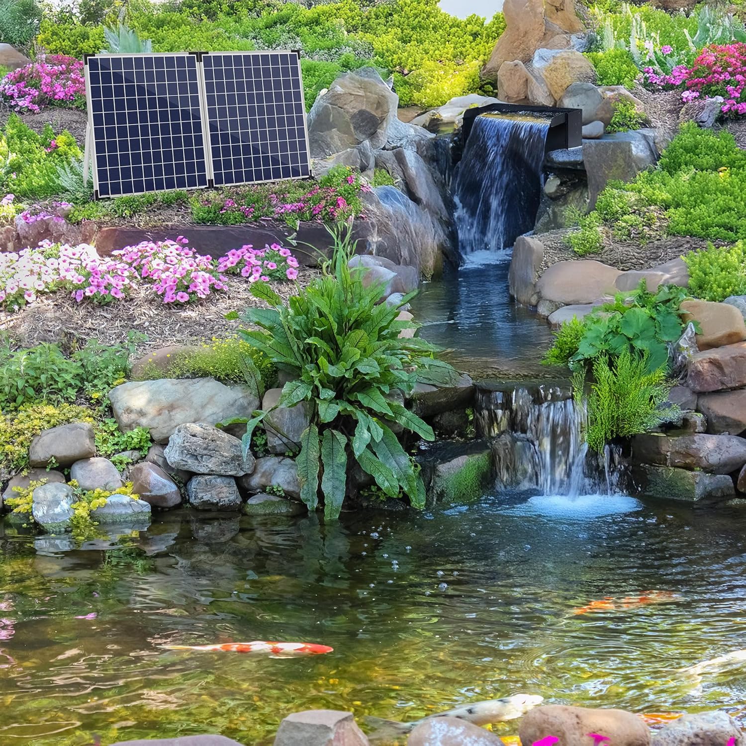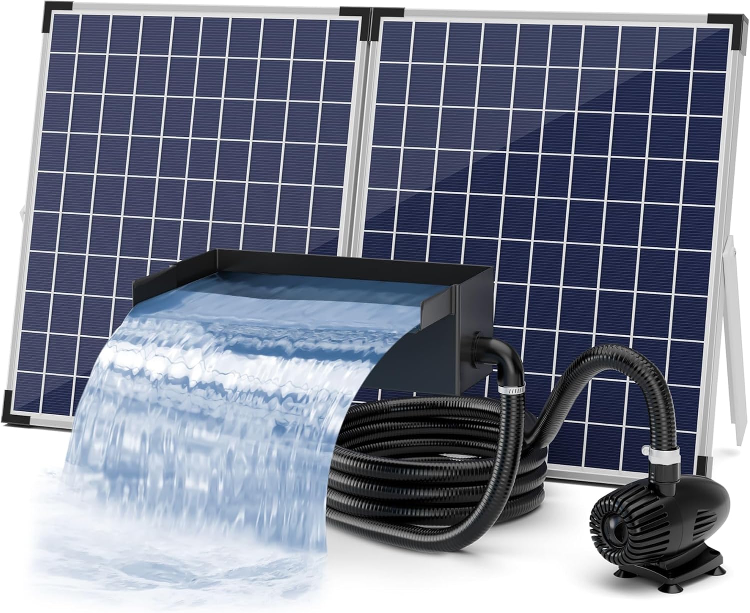 Biling complete solar waterfall kit for garden ponds, 20cm stainless steel waterfall with 2100 l/h pump for garden terrace water feature