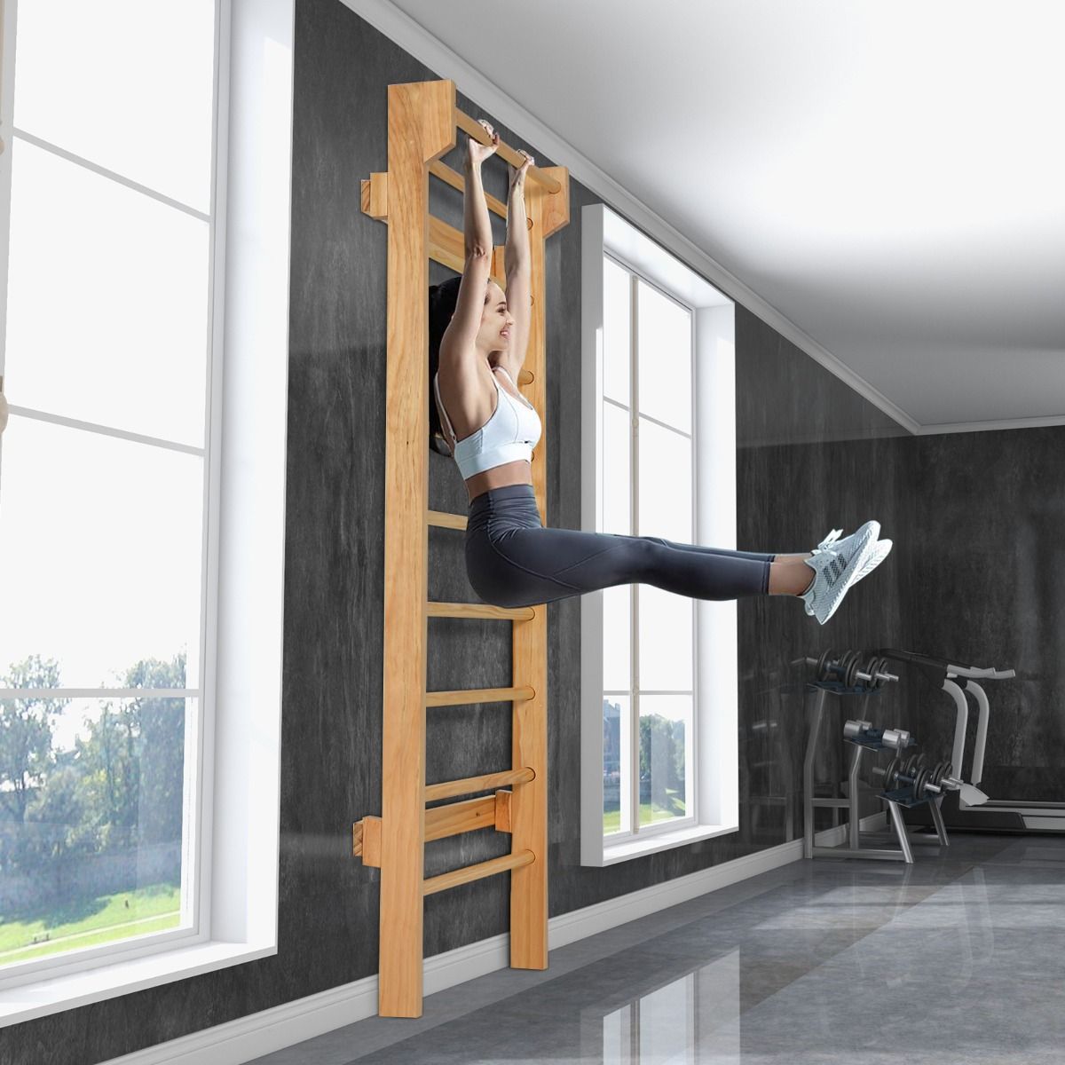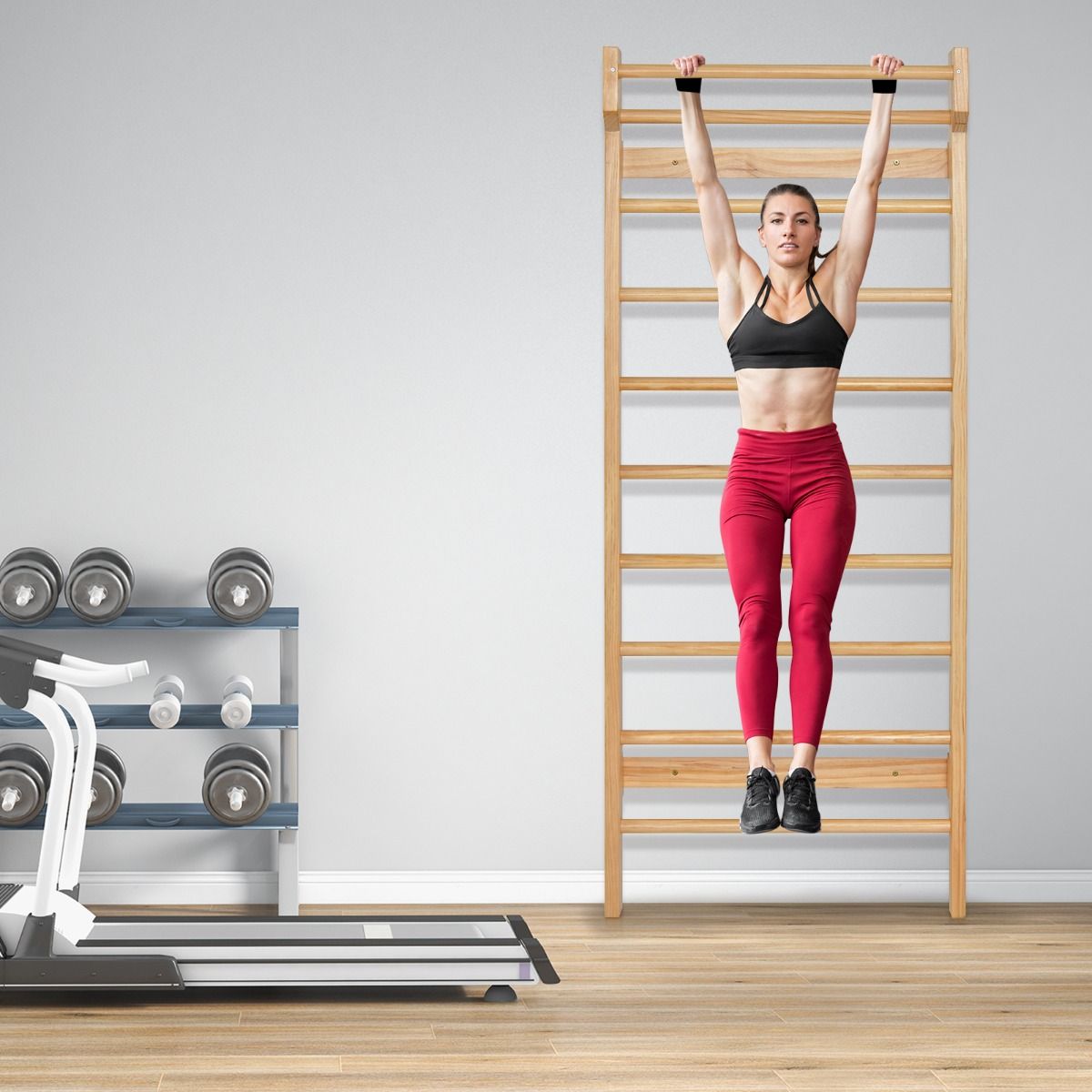 Wall-Mounted Wall Bars, Gymnastics Bars, 150kg Capacity, 3.3cm Bar Diameter, Pine Wood, 195x80x14cm, Natural