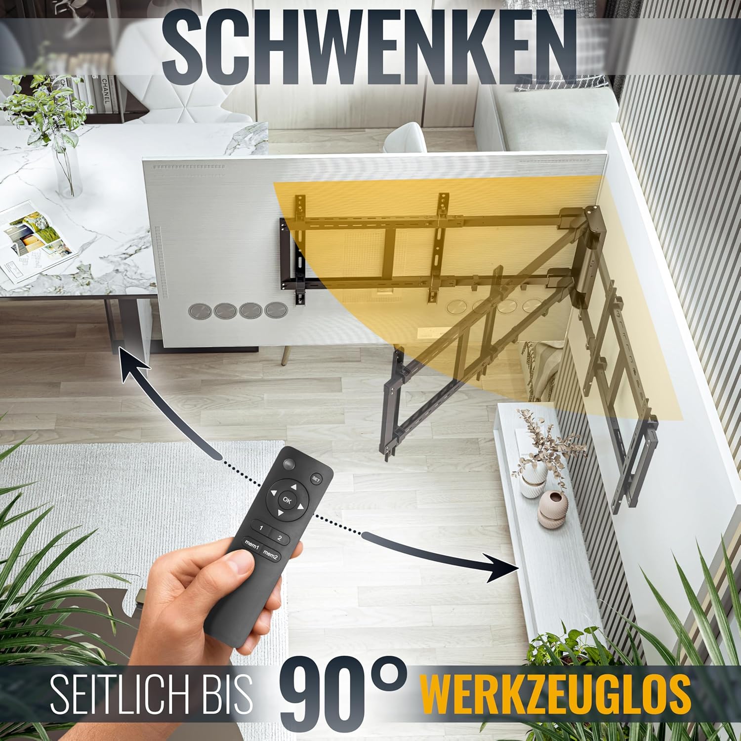 RICOO SE2544 Motorized Swivel Wall Mount TV Bracket, Suspended TV Cabinet for PC, Plasma, Smart, OLED, Curved, Wall Mount for LED, LCD, 3D, 4K TVs, VESA 200x200, 400x400, Universal with Remote Control