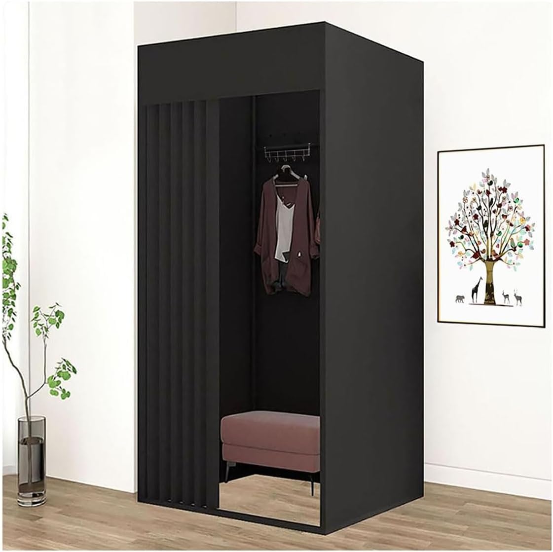 Demountable Fitting Room, Portable Locker with Curtain, Temporary Mobile Fitting Room for Clothing Store, Bedroom, Office, Beach (Black, 100x100x200cm)