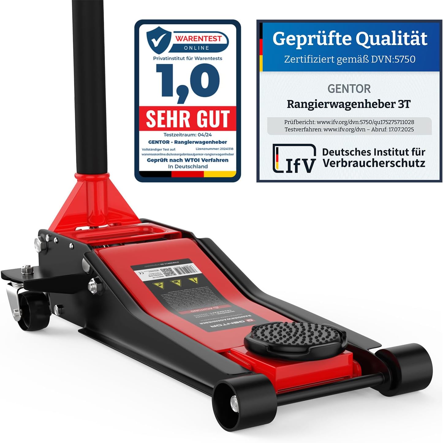 3T Hydraulic Jack - Lifting Height: 75-505 mm - with 2 Rubber Supports - Professional Hydraulic Jack - 360Spend Swivel Lifting Casters, GTWH3000