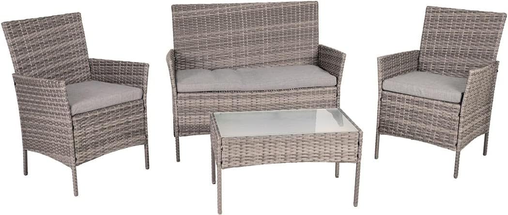 Greemotion Morelia 4-Piece Synthetic Rattan Garden Furniture Set with Table, Sofa, 2 Armchairs, Brown/Beige