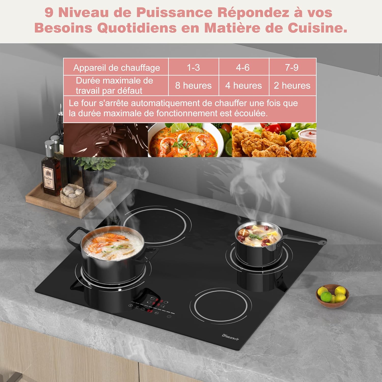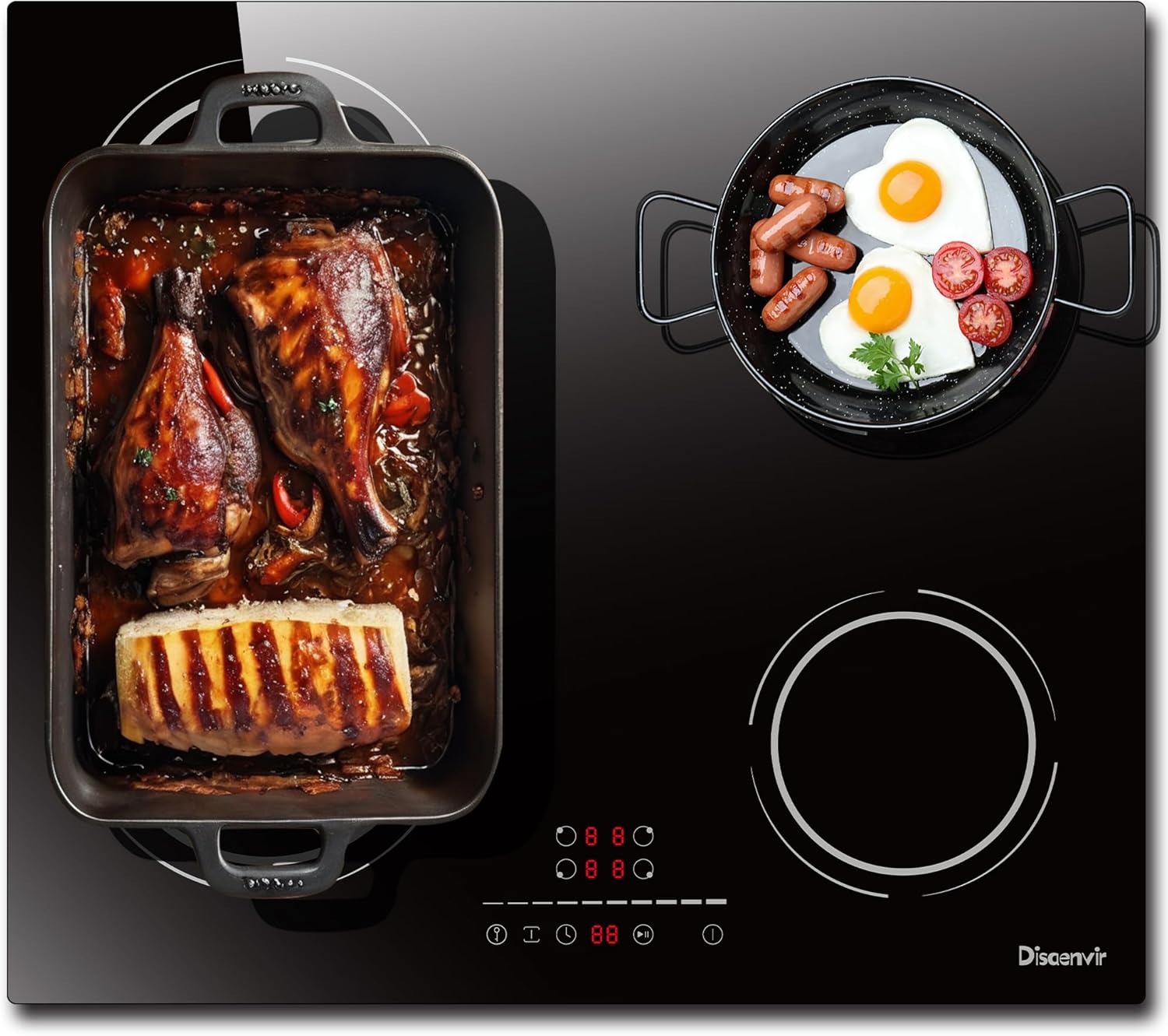 Built-in 4-burner induction hob, 6400W, Flexible Zone Induction Cooktop, 60cm Electric Hob, Pause Function, 9 Power Levels, Touch Controls, Timer, Child Lock