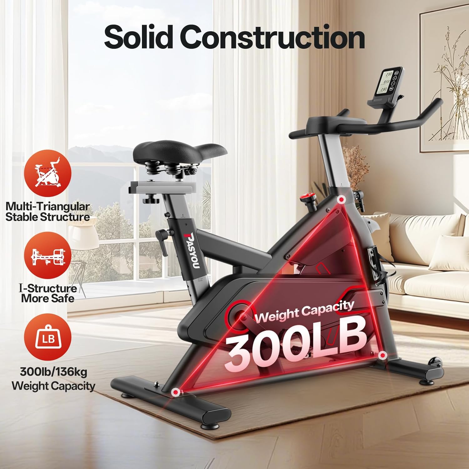 Pasyou Exercise Bike with Magnetic Resistance, Fitness Bike, Indoor Cardio Training Spin Bike, Home Stationary Bike with Monitor and Tablet Holder