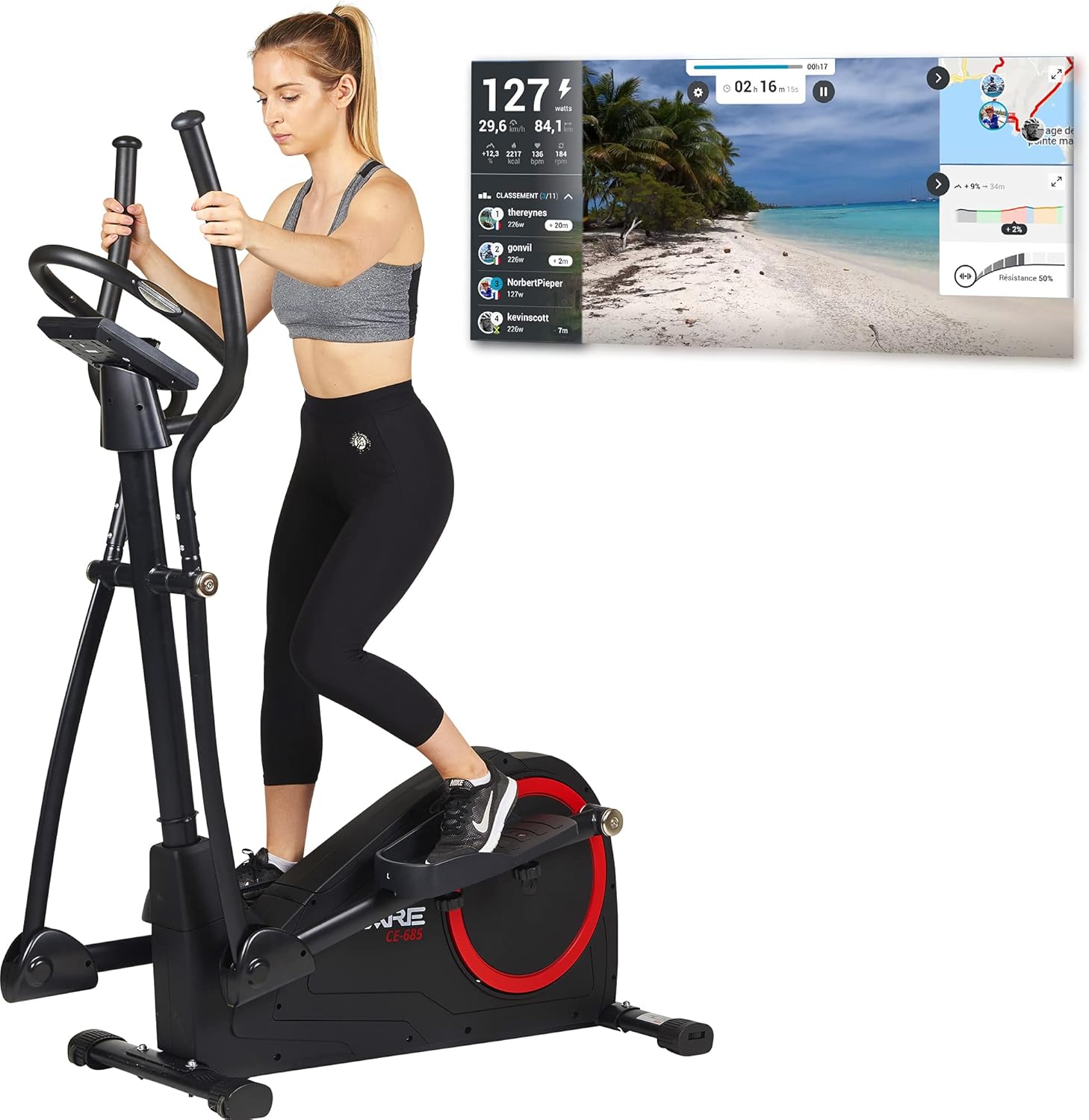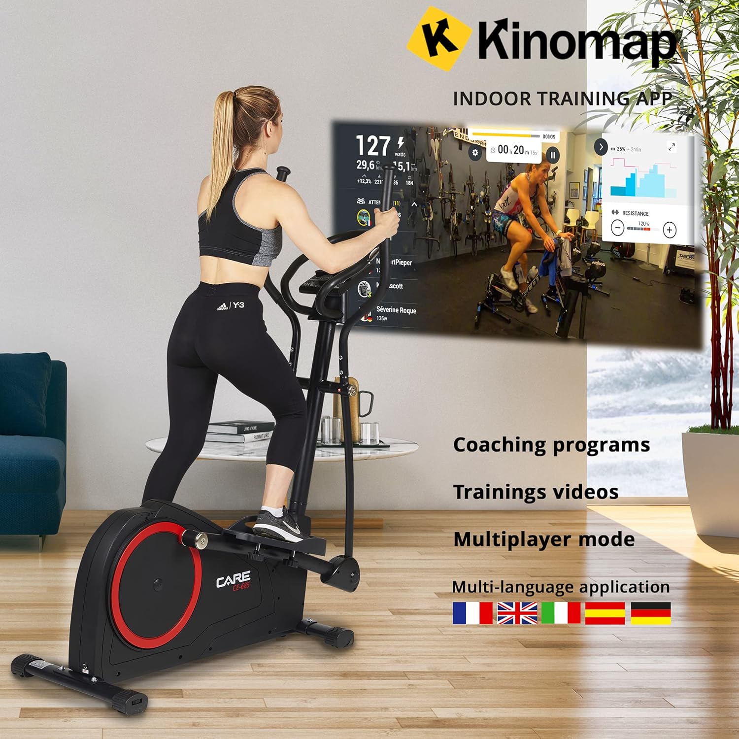 Care Fitness - CE-685 Motorized Elliptical Trainer - 24 Difficulty Levels - 24 Programs - LCD Display - USB Port - Tablet Holder - Kinomap App Compatible