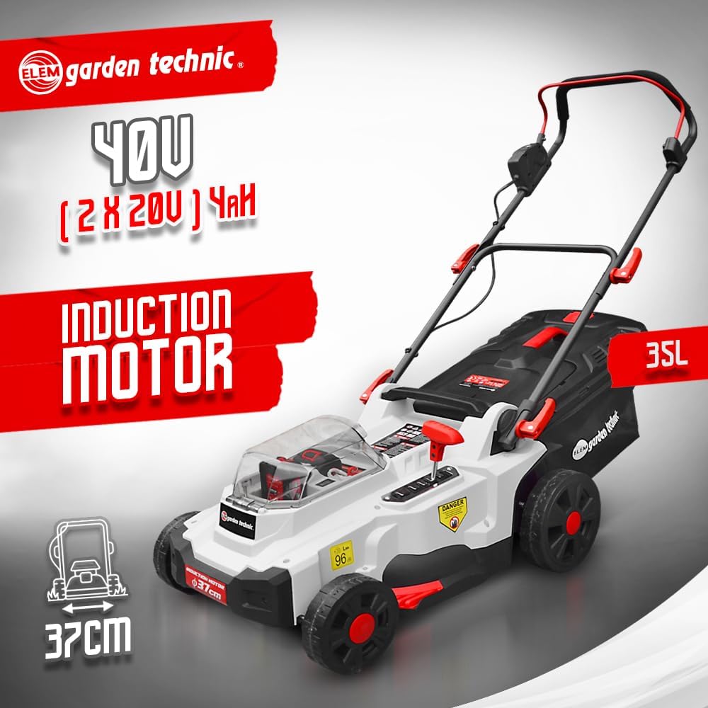 40V (2x20V) 37cm Rechargeable Lawnmower - Batteries and charger included - Elem Garden