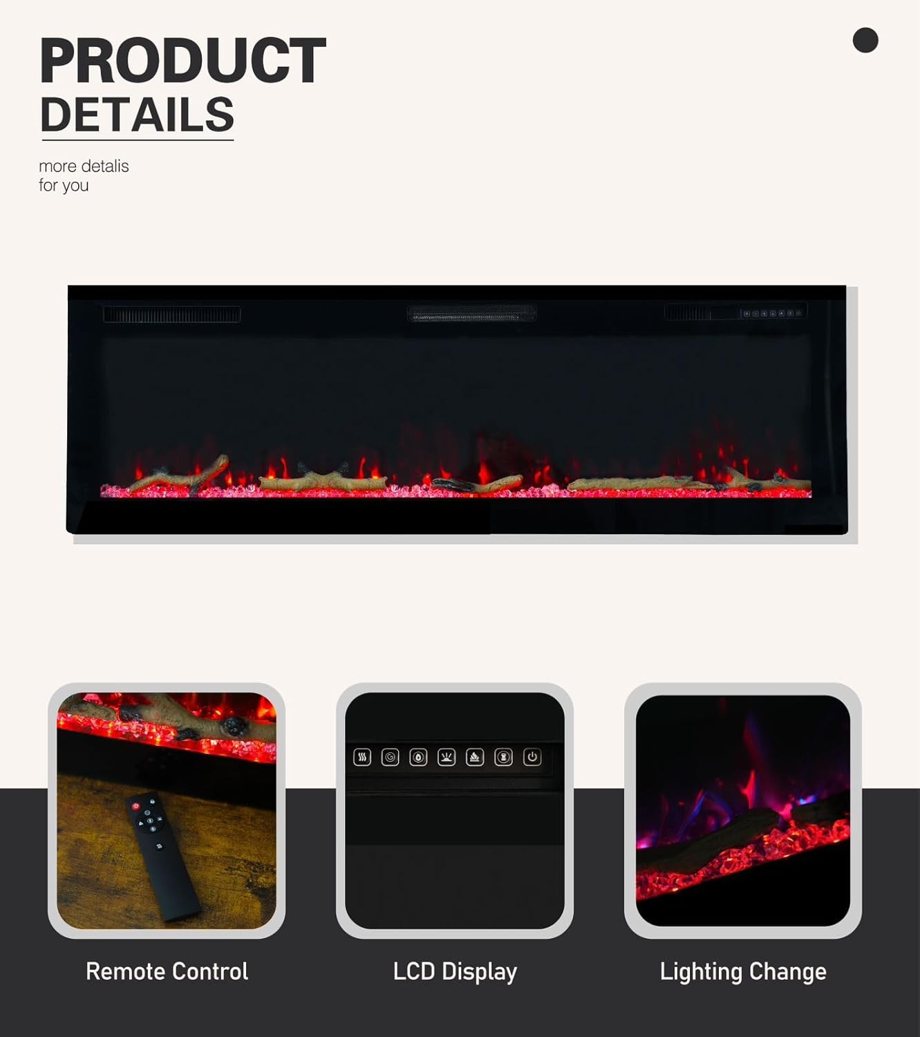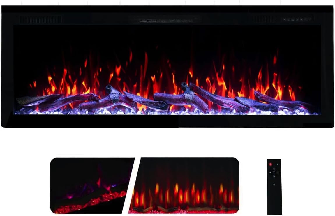 Weka Fireplace E42 Electric Fireplace, Wall and Recessed Mounting, 750W/1500W Power, 13 Background Colors, Adjustable Flame Effects, Overheat Protection (107 cm)