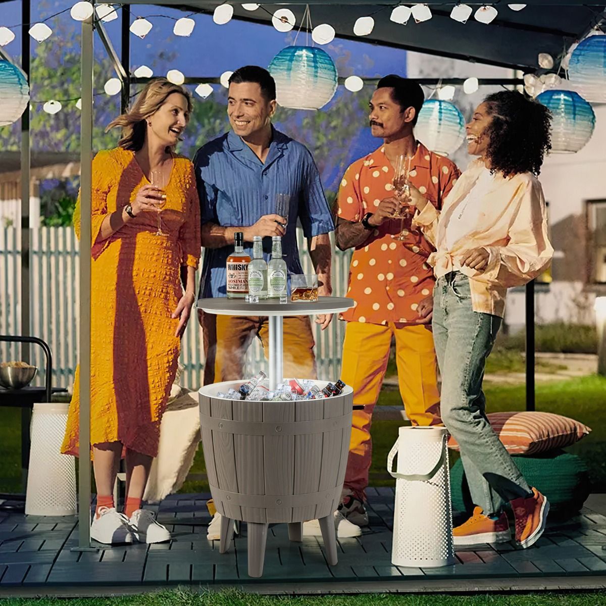 37L 3-in-1 Garden Cooler Table with Telescopic Tray, Outdoor Ice Bucket for Cocktails and Beer, ?48x58/83cm, Brown+White -