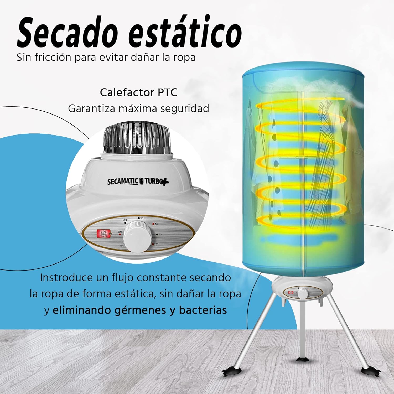 Secamatic Turbo Plus by Xsquo Useful Tech - 1000W Frictionless Portable Hot Air Clothes Dryer
