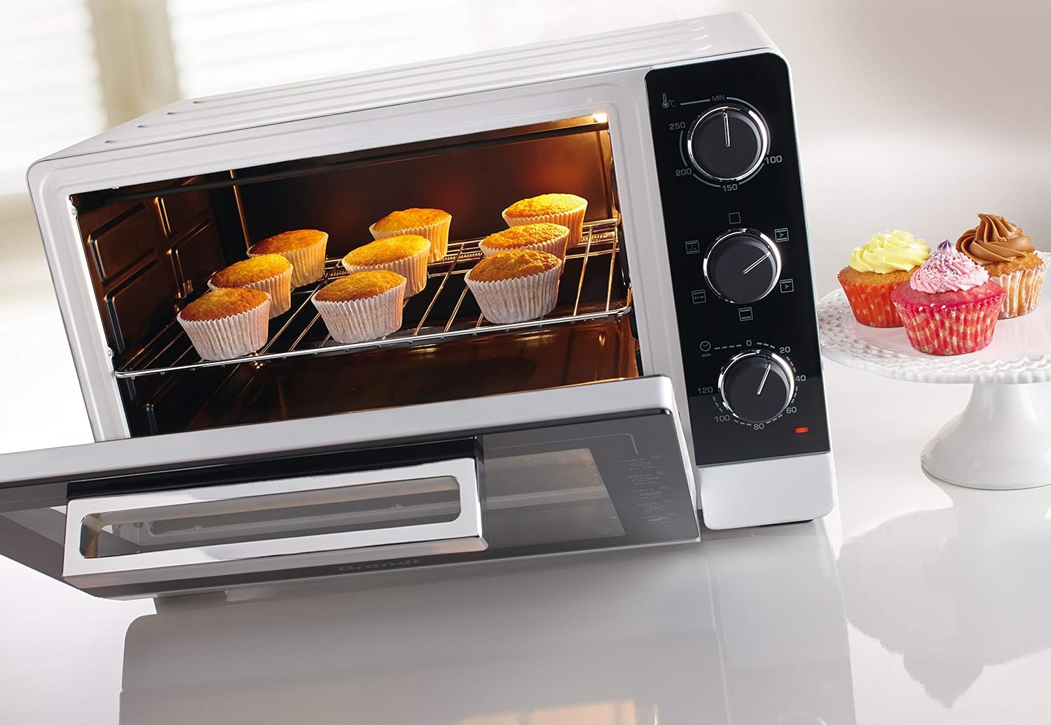 BRANDT - FC405MW - Compact countertop mini oven, 2100W - 40L capacity - Multifunction with 5 cooking modes - Even cooking - Double glazing - White