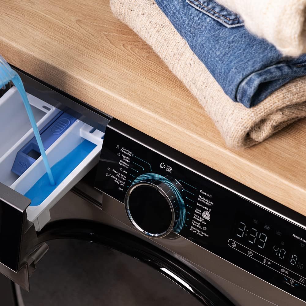 Woolmark certification: Take care of all your clothes and their fabrics, especially wool. Wide variety of programs to suit all your needs and all your garments. Spa Care: Before each wash, steam sterilizes to 99.9%, especially noticeable in cold water washes. Leave your clothes 100% germ and bacteria free and keep them looking like new. Comfort Mode: Adjust the wash and spin cycle to an ultra-quiet setting so it can be used even at night without disturbing your sleep. Sterilization: This program helps sterilize clothes at over 65SpendC for 30 minutes for thorough cleaning. Delay Start: Set the time you want your washing machine to start the program. Drum Clean: The drum is cleaned only to prevent the build-up of bacteria. Washing machine with a 12 kg capacity and a maximum adjustable spin speed of 1400 rpm. With an Inverter Plus motor. It features 14 programs, including Spa Care and Soil Level.
