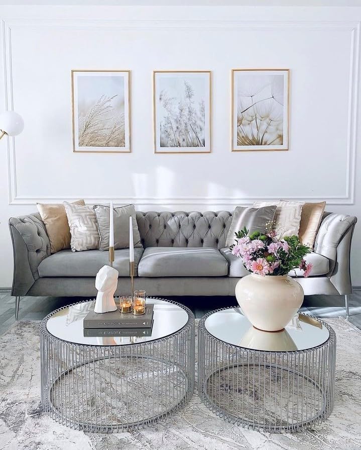 Round Silver Side Table Set: Two side tables with mirrored tabletops add a modern touch to your living room. Suitable for large lounge areas: Perfect for casual areas or spacious sofa sets. Sleek and lightweight construction: The slender construction makes the floor clearly visible, creating a light and spacious visual effect. Timeless and simple design: The simple and elegant appearance allows these side tables to easily blend into any interior style. Wire Collection: A range of coffee tables and side tables, offering a variety of styles to meet the needs of various decorating styles. Product Description: Why just have one coffee table? A combination of two coffee tables creates a more spacious, comfortable, and sophisticated look! Especially this compact round side table with a shiny silver steel base and mirrored tabletop. The Wire Collection offers a variety of styles. Safety Warning: This product is shipped in bulk. Please assemble carefully and do not exceed the maximum weight capacity of 10 kg to avoid personal injury or product damage.