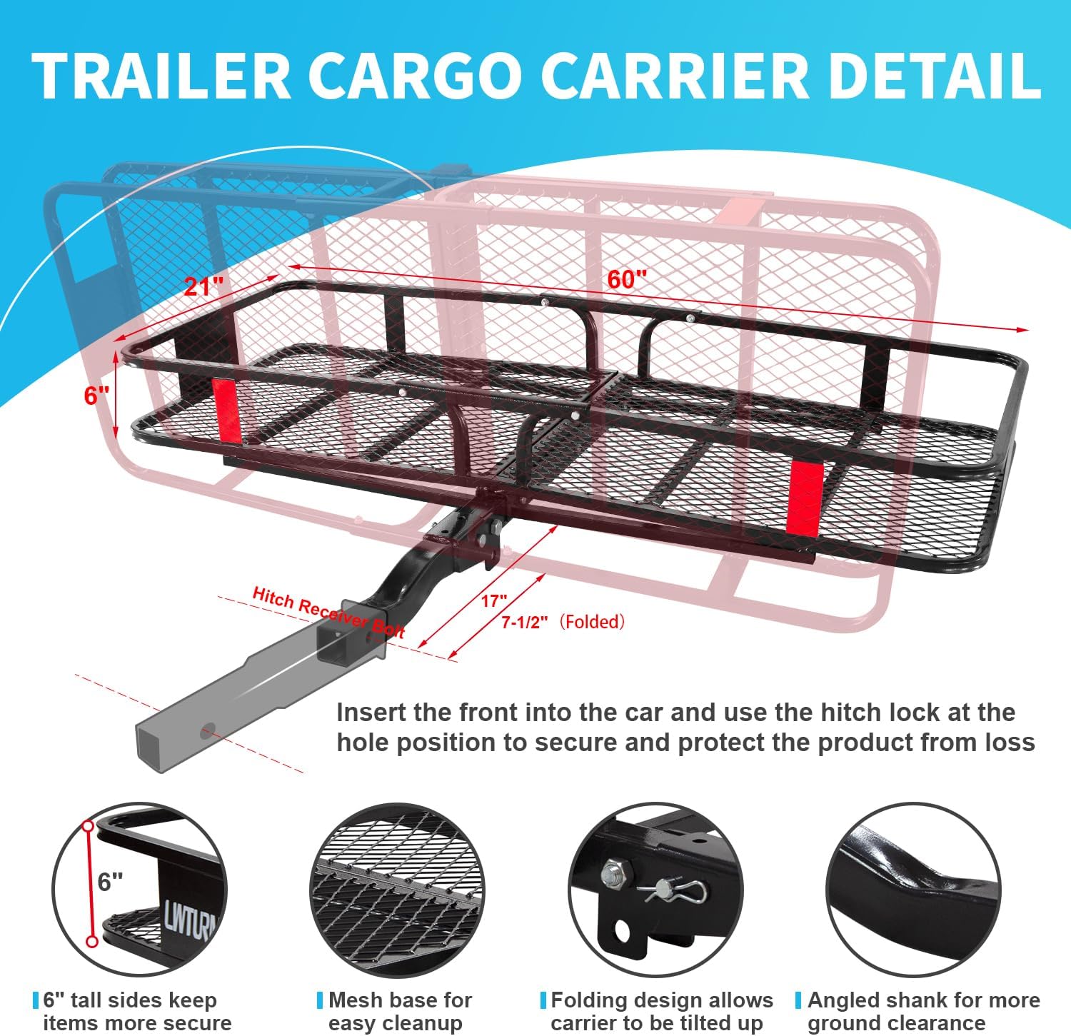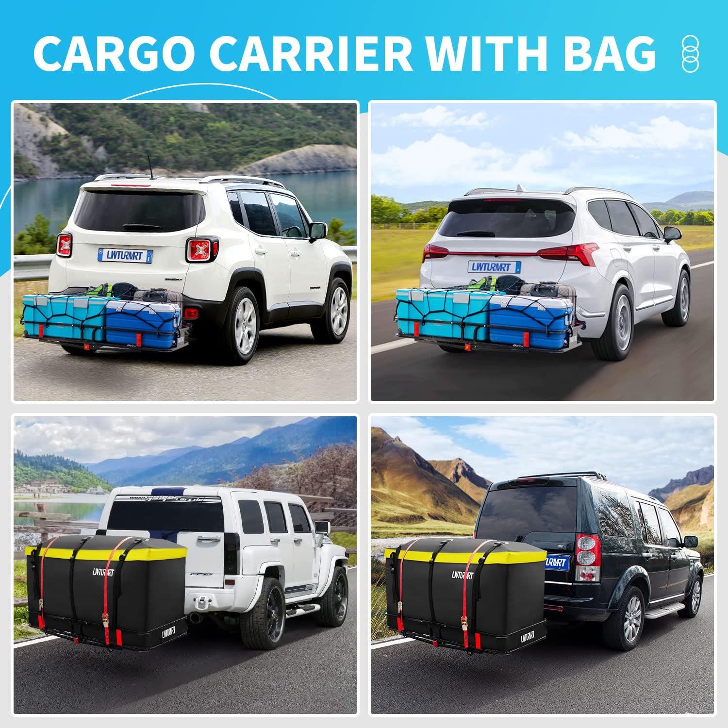 • LWTURMRT 152.4 x 55.9 x 15.2 cm Hitch-Mount Luggage Rack with Waterproof Cargo Bag (147.2 x 50.8 x 61 cm), Rust-Resistant Baked-On Paint and Steel Alloy Material