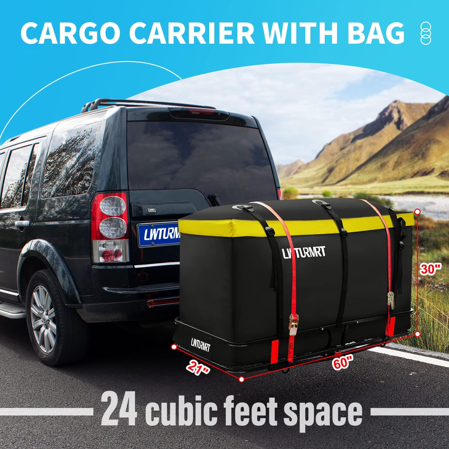 LWTURMRT 152.4 x 55.9 x 15.2 cm Hitch-Mount Luggage Rack with Waterproof Cargo Bag (147.2 x 50.8 x 61 cm), Rust-Resistant Baked-On Paint and Steel Alloy Material