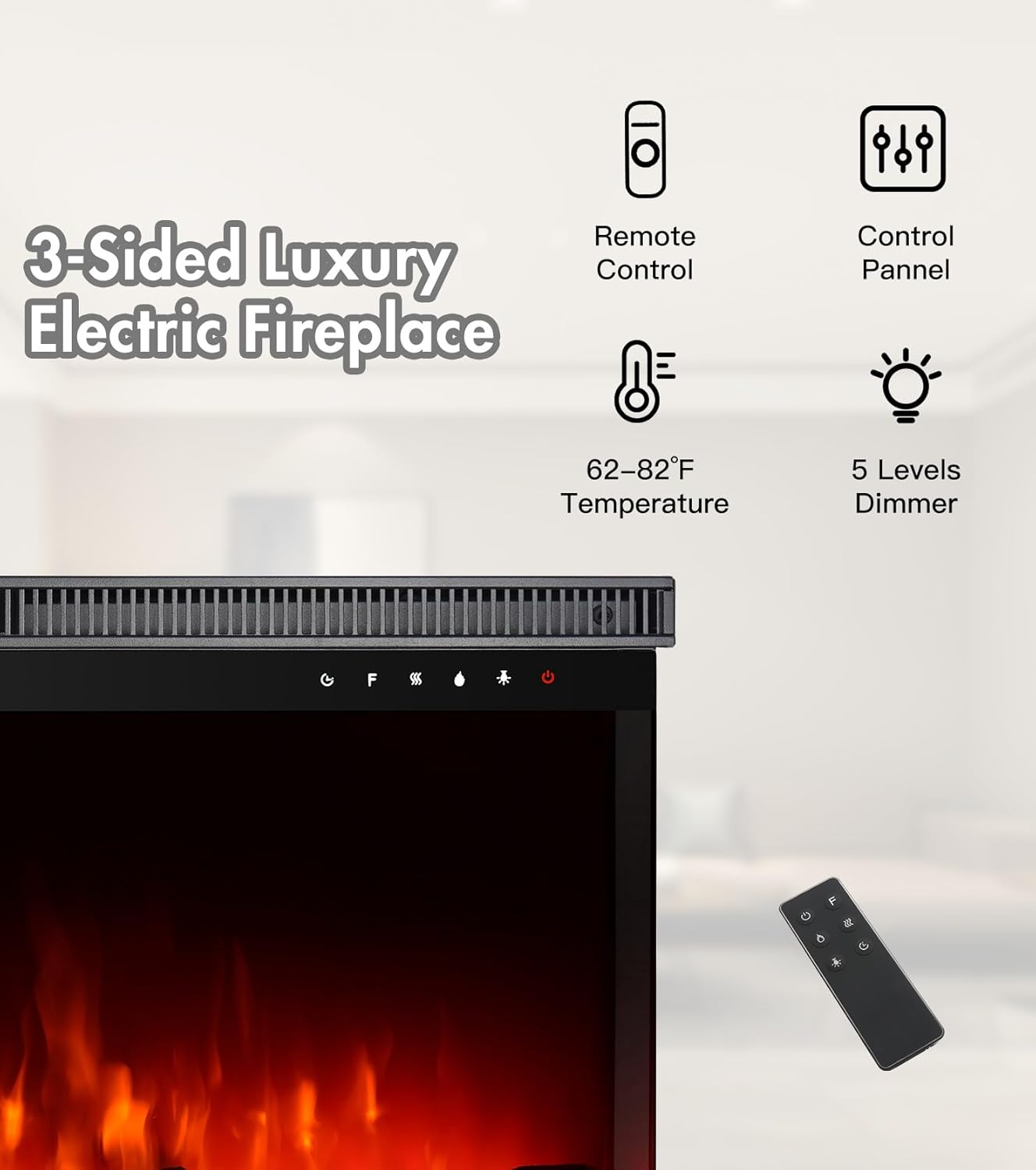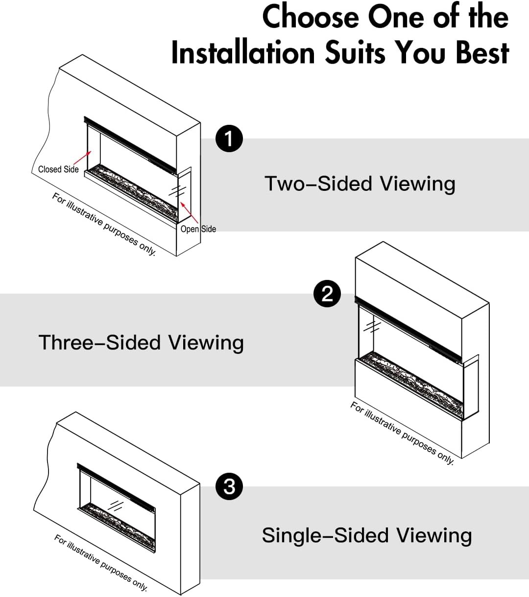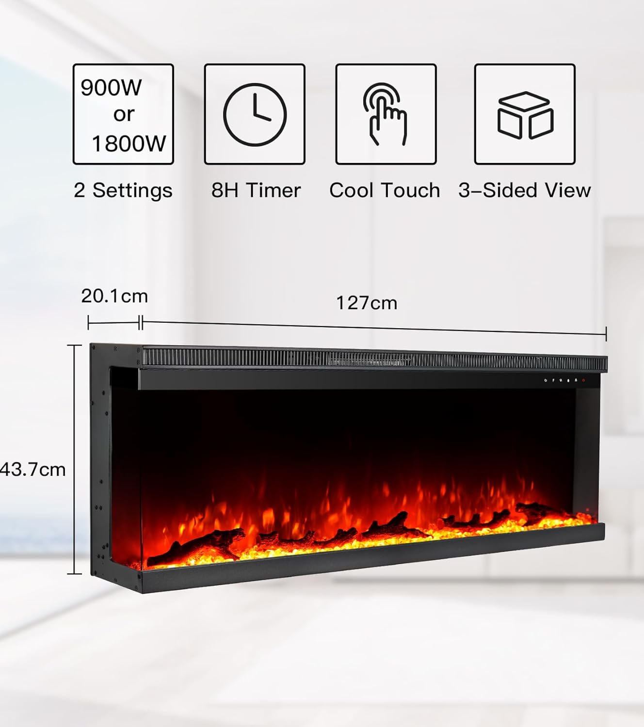 Wide Flame View: This electric fireplace's three-sided flame design provides a multi-dimensional flame experience. You can enjoy the roaring flames from any direction. Installation: You can embed one or both sides of the fireplace into the wall, or leave both sides exposed for a panoramic view. This electric fireplace is ideal if you have a protruding wall. Essential for Cold Weather: In addition to realistic flames, the fireplace's warmth is also crucial, especially during the cold winter months. This electric fireplace features a built-in heater independent of the flame and offers two power settings (900-1800 watts). Room Decor: Pairing our electric fireplace with a TV or artwork in your living room or bedroom will make your room more cozy and inviting. After a long day, you can completely relax with the warmth of the flames. Dimensions: Overall dimensions: 127 cm * 20.1 cm * 43.7 cm (50 inches * 7.9 inches * 17.2 inches). Flame front dimensions: 31.54 cm * 127 cm (12.4 inches * 50 inches). Flame side dimensions: 10.63 cm * 35.2 cm (4.2 inches * 13.9 inches). Timer and temperature: 62-82SpendF/17-28SpendC, 0-8 hours. MCHaus' mission is to satisfy every customer.