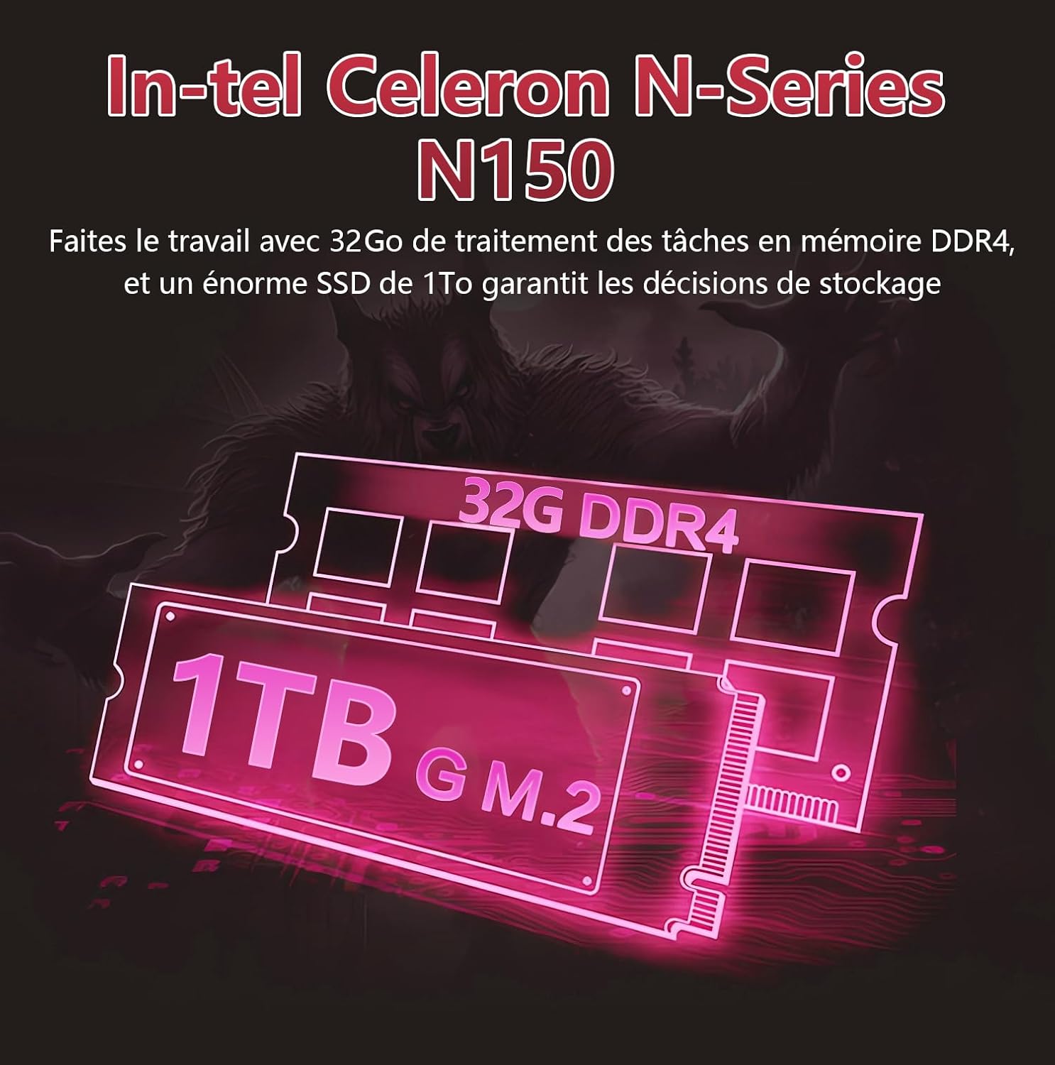 Flagship-level performance engine, equipped with a Celeron N150 processor (3.4 GHz), 32 GB of high-frequency DDR4 memory, and a 1 TB solid-state drive, ensures smooth operation of multiple applications. Whether for work, creation, or leisure, it handles everything with ease, without any lag. Professional visual system: A 15.6-inch Full HD IPS screen (1920x1080), paired with a noise-canceling smart camera, delivers cinematic color accuracy. Clear and sharp images eliminate motion blur, making it ideal for online courses, streaming media, and video conferencing. Lightweight and elegant design: Crafted with aerospace-grade magnesium-aluminum alloy unibody construction. The body is only 18 mm thick and weighs just 1.679 kg, making it lightweight and portable. A three-level backlit keyboard provides comfort for remote work in a caf�� or studying in a library. Mobile office essential: Its compact size (360 * 275 mm), 8000 mAh battery, and intelligent power management provide up to 3 hours of battery life. Two USB 3.0 ports and a miniSD card slot (expandable up to 128 GB) make it a fully-featured mobile workstation. Smart connectivity: Dual-band 5G Wi-Fi (802.11ac) with a theoretical throughput of up to 867 Mbps, combined with Bluetooth 4.2 technology for quick pairing with wireless headphones or printers. The SD card slot and USB 3.0 ports optimize data transfer.