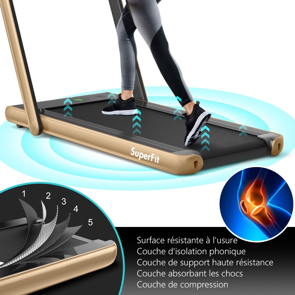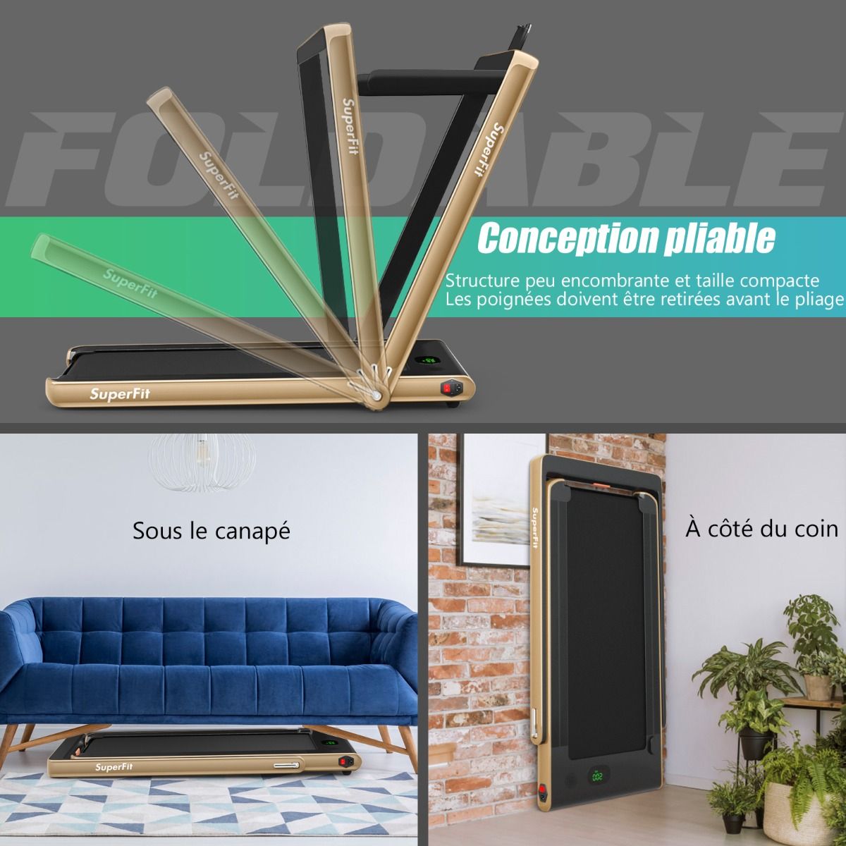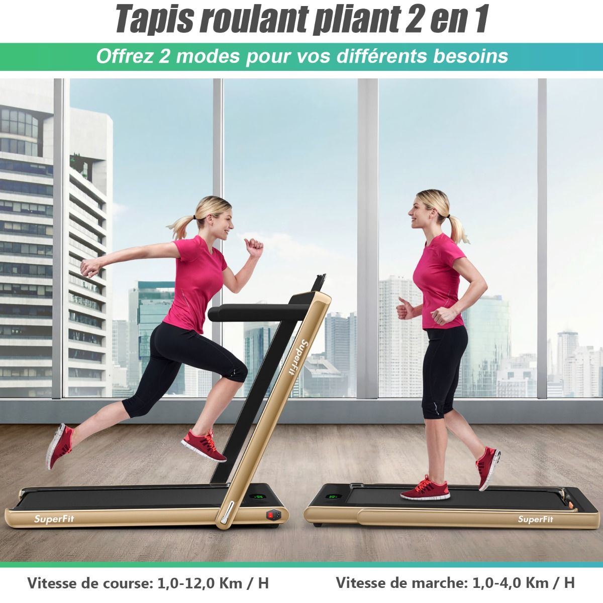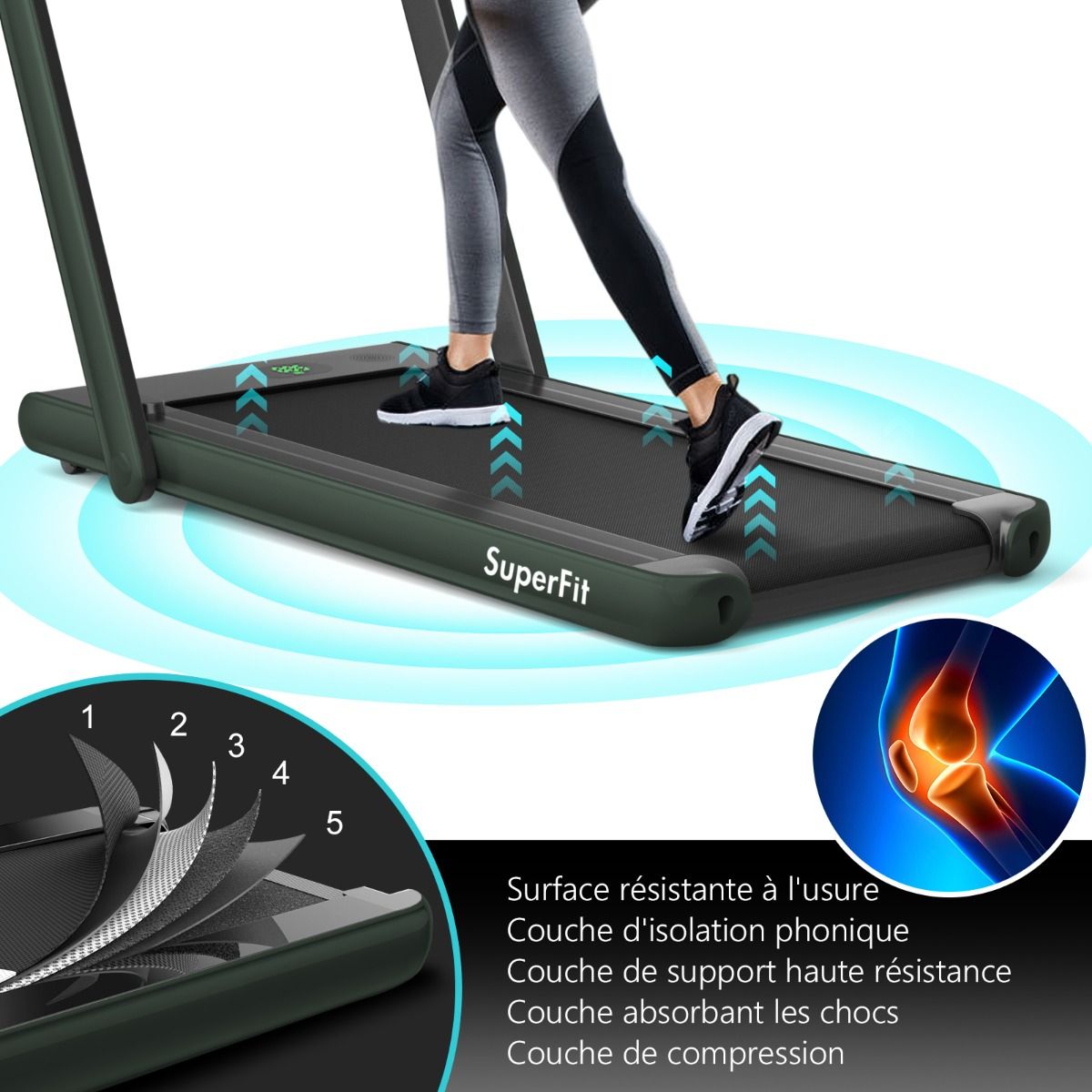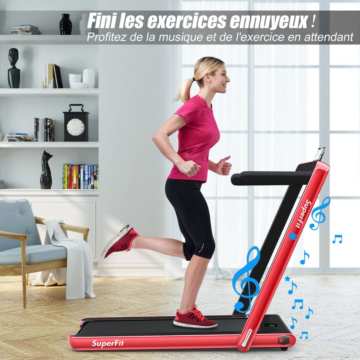 No need to run outdoors in the heat or go to the gym. This folding treadmill is the perfect choice. Sturdy and stable, it features a robust frame and a durable five-layer running belt, ensuring superior performance. The foldable handrails offer two different modes to meet various needs. Whether you're a professional athlete or a beginner, you can find a mode and intensity that suits you. Furthermore, the multi-functional LED display accurately shows your running time, speed, and calorie consumption, allowing you to comprehensively monitor your fitness and conduct targeted training. With this folding treadmill, you can take action now and start a healthier life. Product Features: 2-in-1 folding multi-functional treadmill offering two modes to meet different training needs. With the handrails folded, it can be used as a treadmill. It can be placed under a table, with speeds from 1 to 4 km/h, allowing you to enjoy a more relaxed running experience. With the handrails raised, the running speed ranges from 1 to 12 km/h, perfect for workouts. Quiet Motor and Stable Structure: The treadmill is equipped with a powerful yet quiet 0.75 horsepower motor with an inductor filter. It operates relatively quietly and won't disturb neighbors, making it ideal for office or home use. In addition, the sturdy and durable iron frame provides excellent stability. The multi-layered running belt effectively absorbs impact, ensuring a more comfortable running experience. The high-density textured running belt also provides stronger grip and safety. Bluetooth speaker and LED display: Time, speed, distance traveled, and even calorie consumption are clearly displayed on the LED screen. You can track your progress and fitness status in real time. Running is no longer boring: The treadmill is equipped with Bluetooth technology, allowing you to play your favorite music. Phone holder and easy installation: The phone holder securely and stably holds your phone. This way, you can watch movies or chat with friends while exercising. Furthermore, 95% of the components are pre-installed, making installation simple and quick. Using the remote control, you can quickly adjust the speed and stop the treadmill. Ultra-portable design, easy to store. This treadmill has a compact and foldable design, with folded dimensions of only 132 cm x 70 cm x 12.5 cm (L x W x H), easily stored under the bed or sofa, taking up minimal space. In addition, built-in wheels make moving it even easier and more convenient. Powerful Features: Compact size and foldable design for easy storage; Stable and durable steel frame ensures a long product lifespan; Bluetooth functionality makes running more fun and motivating; Two different modes to meet various situations and needs; Equipped with wheels for easy movement and transport; LED display shows your fitness level and progress accurately in real time; Durable and non-slip running belt designed specifically for running and exercise. Specifications: Colors: Green, White, Black, Red, Gold, Black/Silver, Blue; Material: ABS + Iron; Net Weight: 34.66 kg; Maximum Load Capacity: 120 kg; Unfolded Dimensions: 124.5 x 68.5 x 108.5 cm (L x W x H); Folded Dimensions: 133.5 x 68.5 x 12.5 cm (L x W x H); Walking Speed: 1.0-4.0 km/h; Running Speed: 1.0-12.0 km/h; Peak Motor Power: 0.75 hp; Noise Level: Below 60 dB Running area dimensions: 40 x 100 cm (L x W) Package includes: 1 x 2-in-1 treadmill, 1 x remote control, 1 x phone holder, 1 x instruction manual, 1 x power cord, 1 x safety key